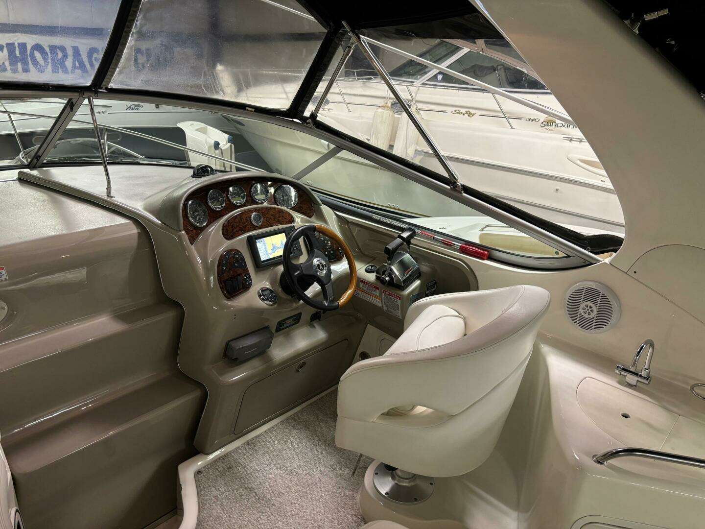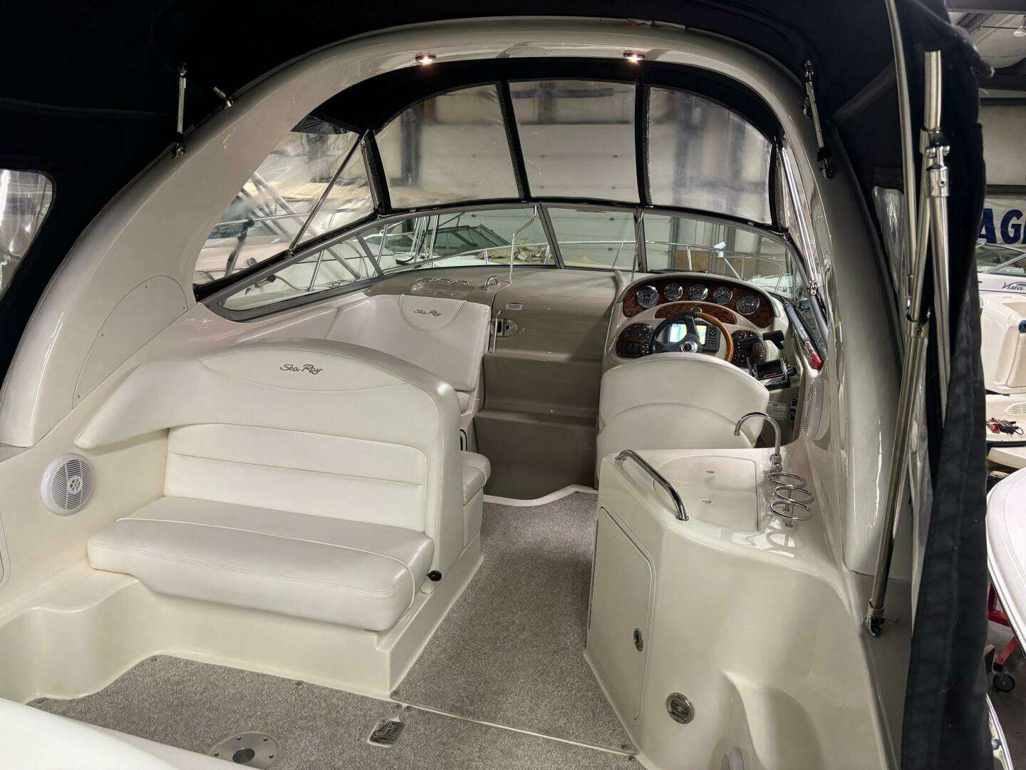 Here is a Great Opportunity on a Freshwater, Twin engine 280 Sea Ray Sundancer! This 280 Sea Ray Sundancer has the Twin Merc 4.3L MPI's with 568 hours! She includes beautiful Black hull sides, Air/Heat, Windlass, camper canvas package, Garmin Plotter, Vac u flush head and much more. Stored inside heated storage and easy to see. Call or email us for all the details.