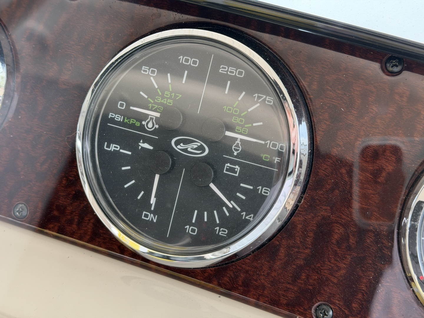 Gauges: SmartCraft Tachometer w/Fuel Economy/Engine Hours & Data/Troll Control/Depth Finder/Water Temp., Cluster Gauge w/Drive Trim/Battery Volts/Oil Press./Engine Temp., Speedometer, & Fuel Gauge,