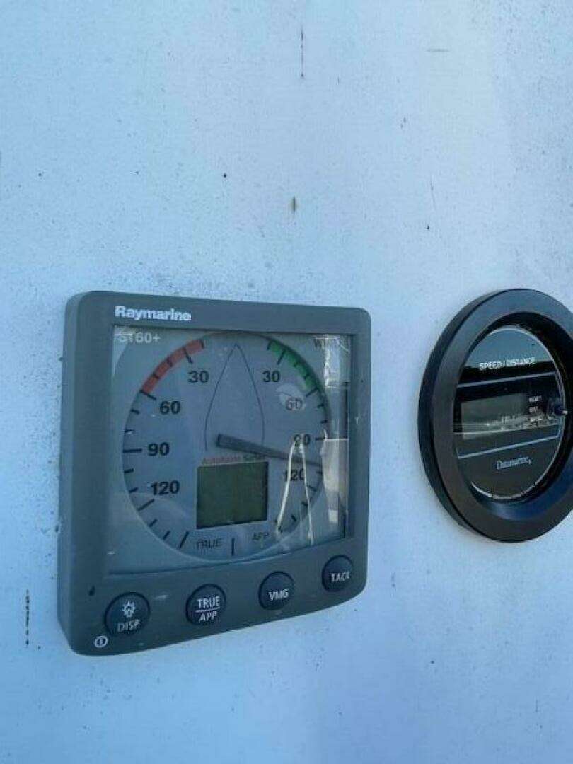 - Raymarine ST60+ wind direction and speed display on bulkhead