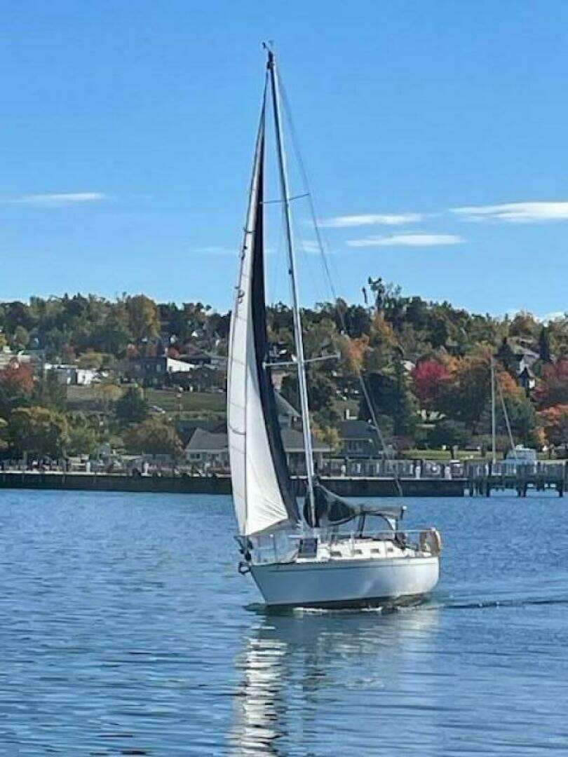 This 1986 Tartan 28 was designed by Sparkman & Stephens and combines a fast and agile modern underbody with classic Tartan interior and exterior craftsmanship. The graceful fiberglass hull is hand-laid for the best possible ratio of strength to weight. Above and below decks, extensive teak trim and cabinetwork provide unusual warmth and character. The 28 is built and equipped like larger Tartans and its efficient deck, cockpit and interior plan will comfortably entertain and sleep five. The Tartan 28 was built not just for waters where under 30 foot boats normally sail but for ocean conditions.