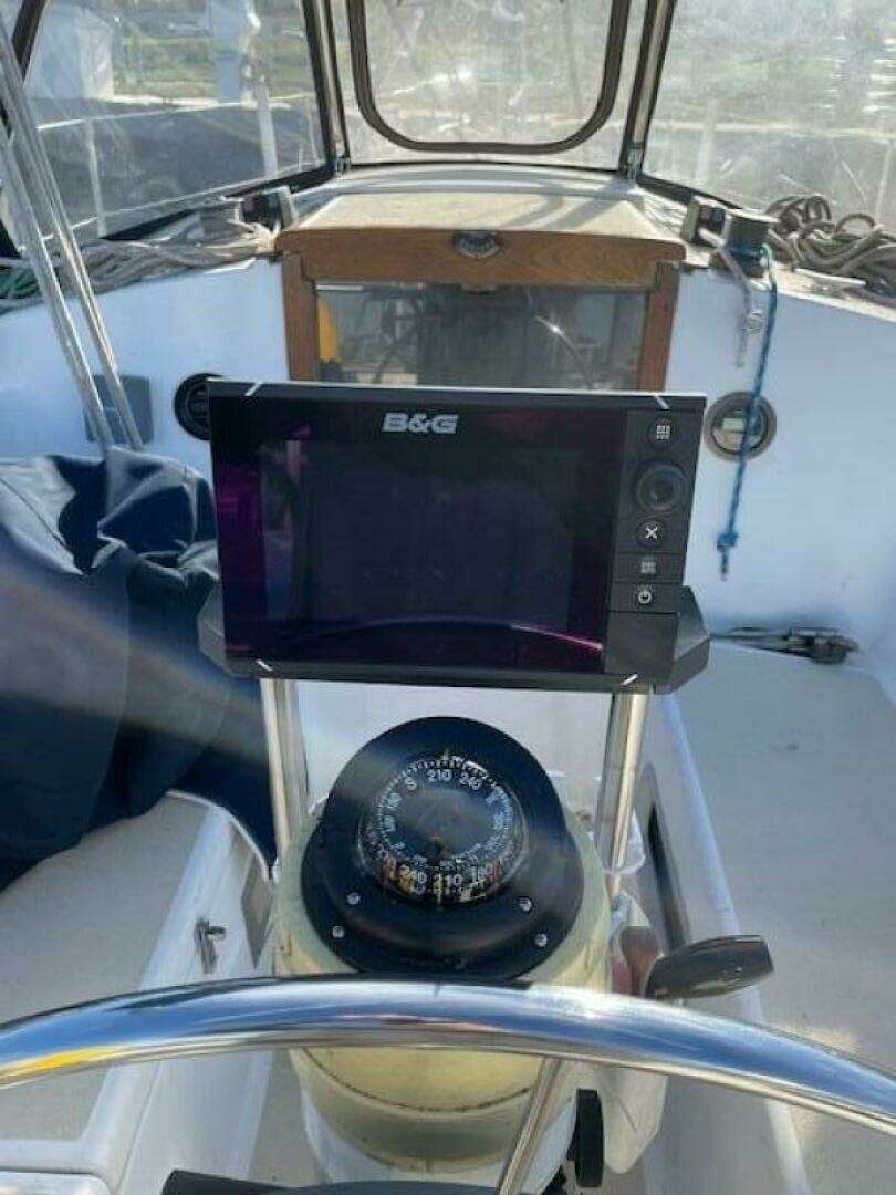 Genoa in good shape on a furler with UV protection on the leach. Mainsail in fair shape with canvas mainsail cover. Two spinnakers in excellent condition. Dodger with stainless steel frame and opening front window. Pedestal/wheel cover.