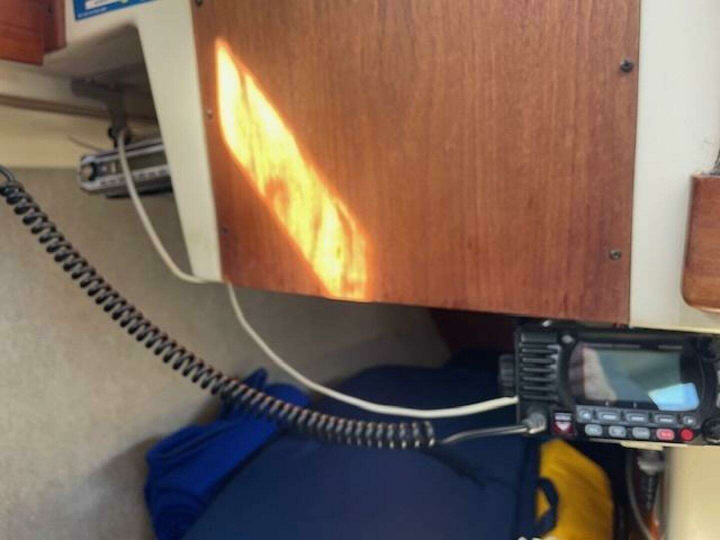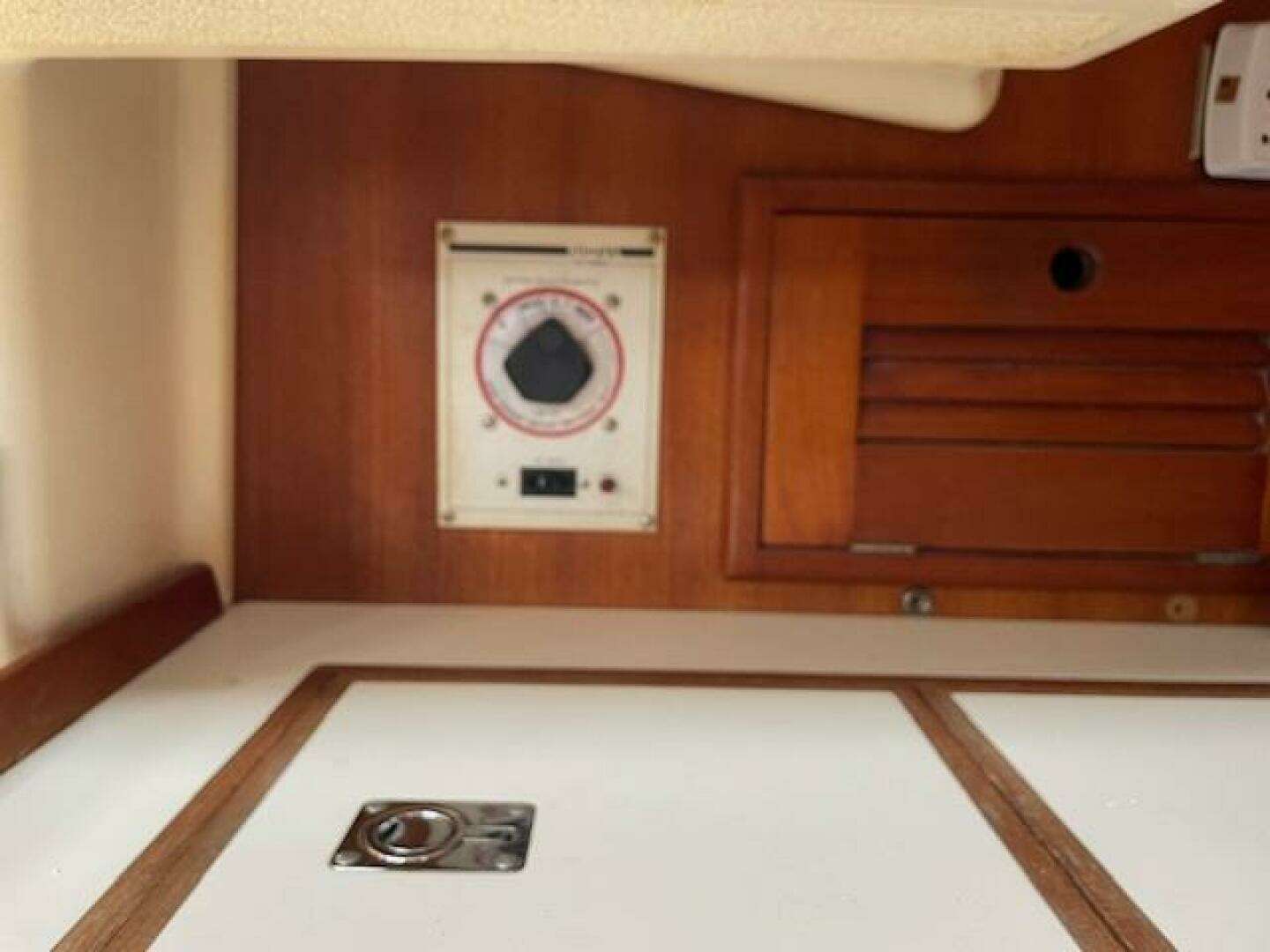 - Original Datamarine speed/distance and depth displays mounted on bulkhead