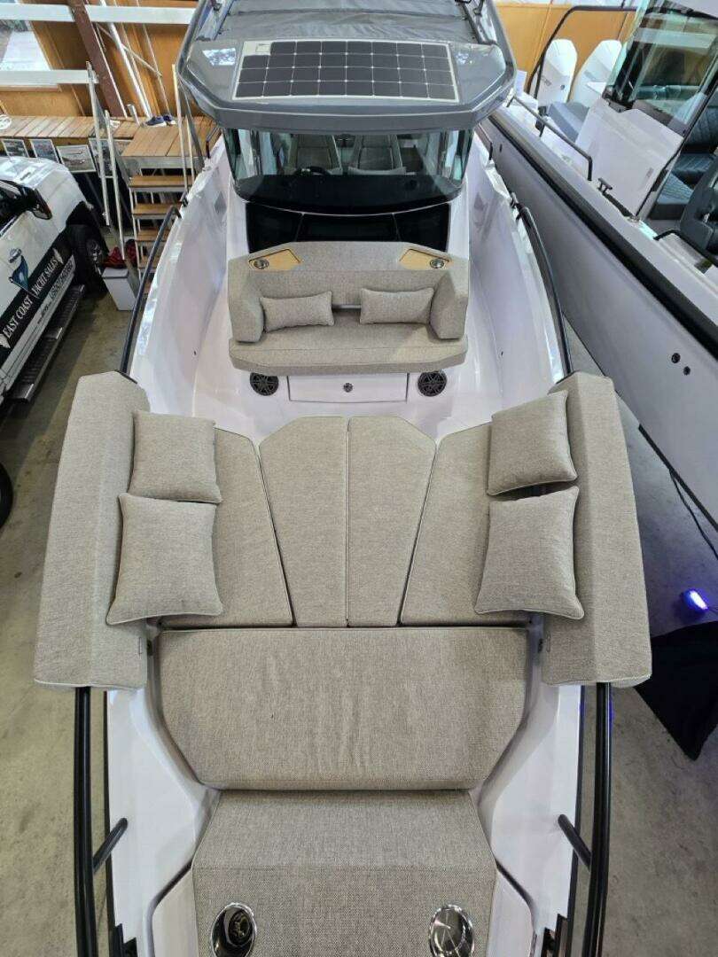 The Cross Cabin layout provides year-round comfort and protection, while the BRABUS trim package adds premium materials, exclusive detailing, and upgraded performance features. Perfectly sized for day trips or overnight excursions, the Axopar 29 XC delivers efficient cruising, agile handling, and the rugged reliability Axopar is known for.