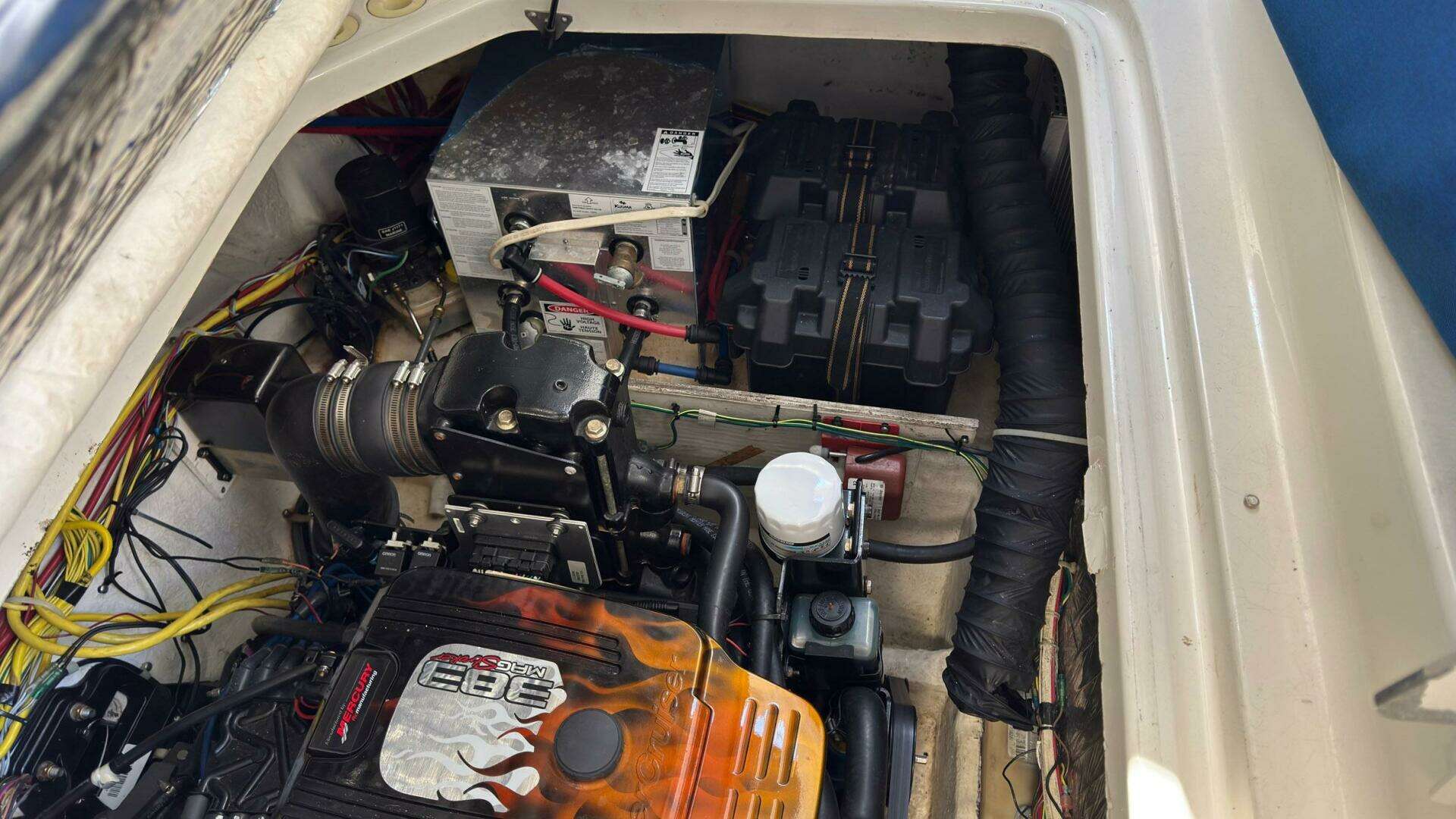 - Boat repowered in late 2016 with a 383 stroker/350 hp engine. The lower drive unit was replaced at the same time. Bilge is very clean!