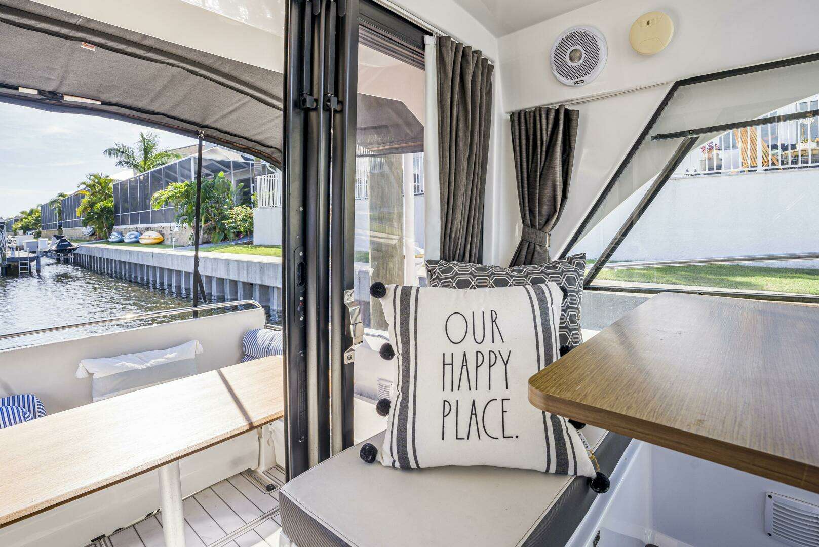 - Detailing & Care: Professionally waxed and detailed approximately every 90 days. The most recent detail and wax completed August 28, 2025. The interior was also deep cleaned.Recently finished and oiled Removable Teak Dining Table in AFT seating area