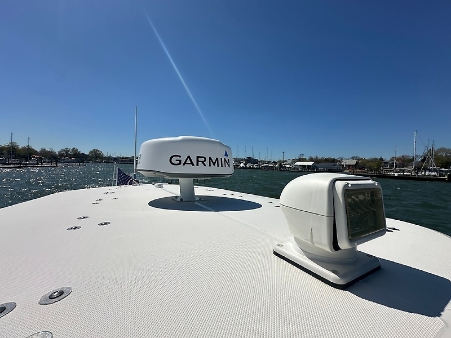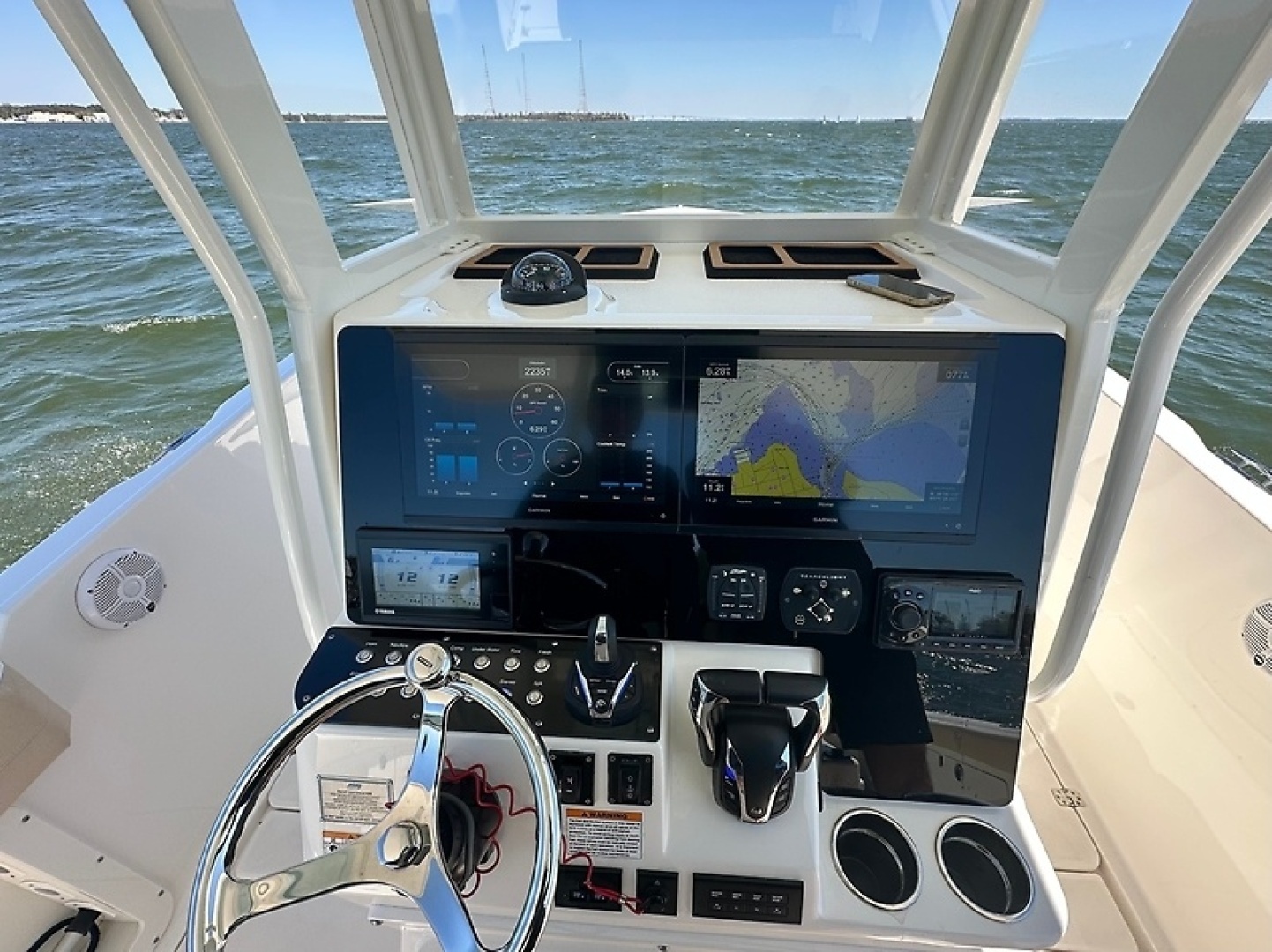 Dual 16" Garmin chartplotters + Garmin 24X radar for confident navigation/autopilot