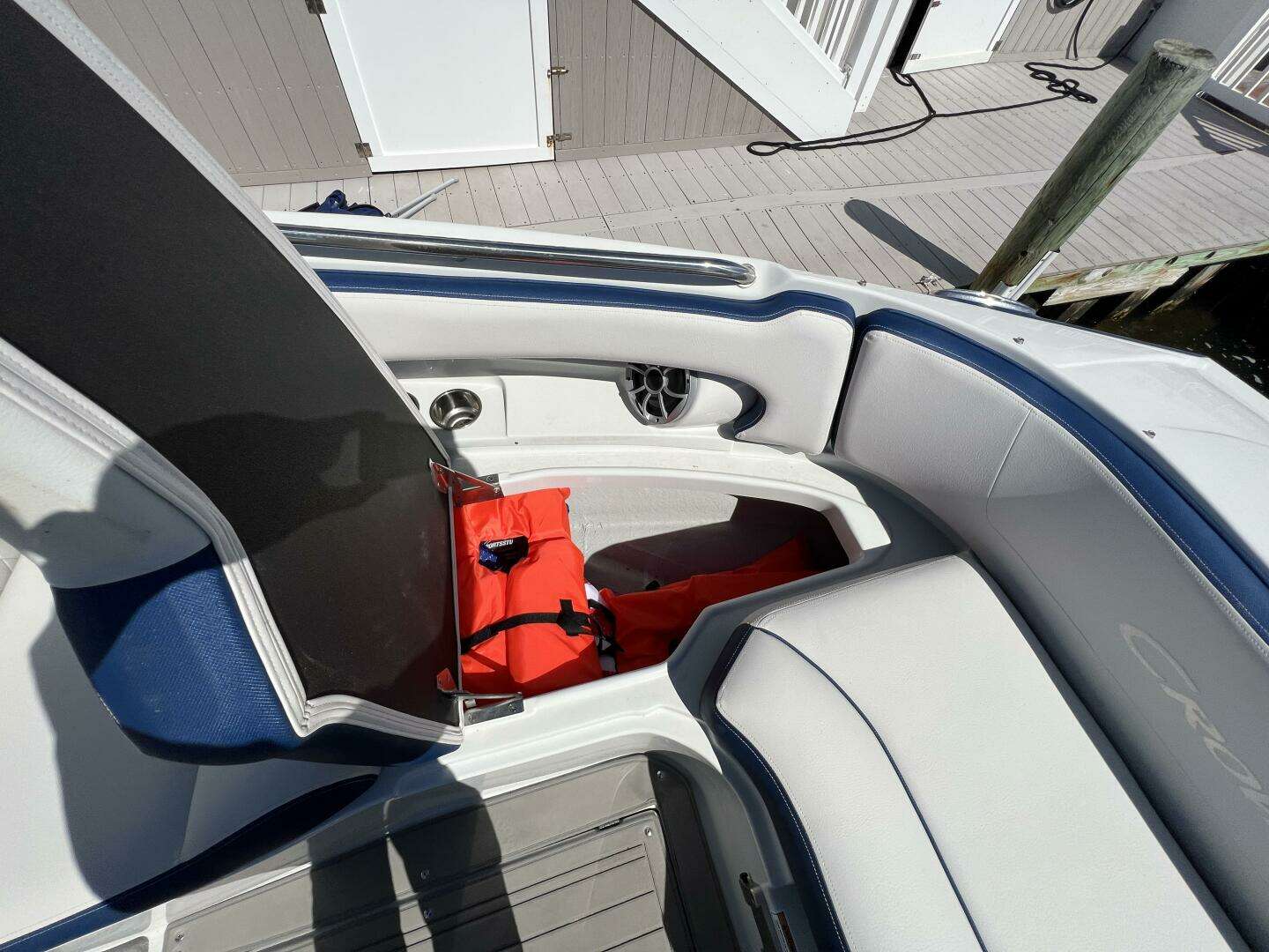 This E305 XS is the largest of Crownline's outboard Eclipse series. It is a feature-packed deck boat built for passionate boaters who are more comfortable on the water than on dry land. This model features a full-width wrap-around swim platform, cockpit bench seating with Dometic drawer refrigerator