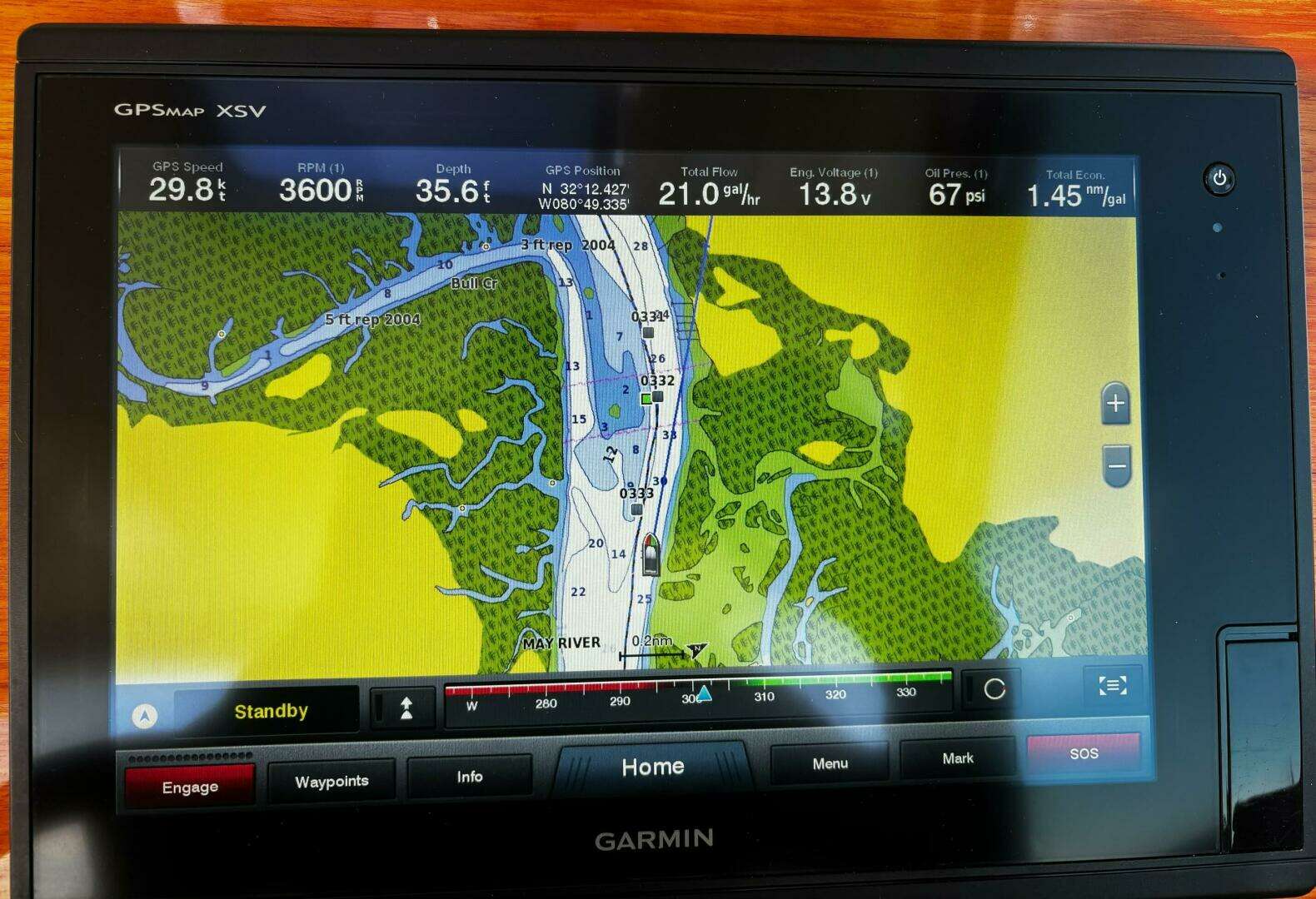 - (2) Garmin GPSmap 7612 12" multi-function displays at the helm.