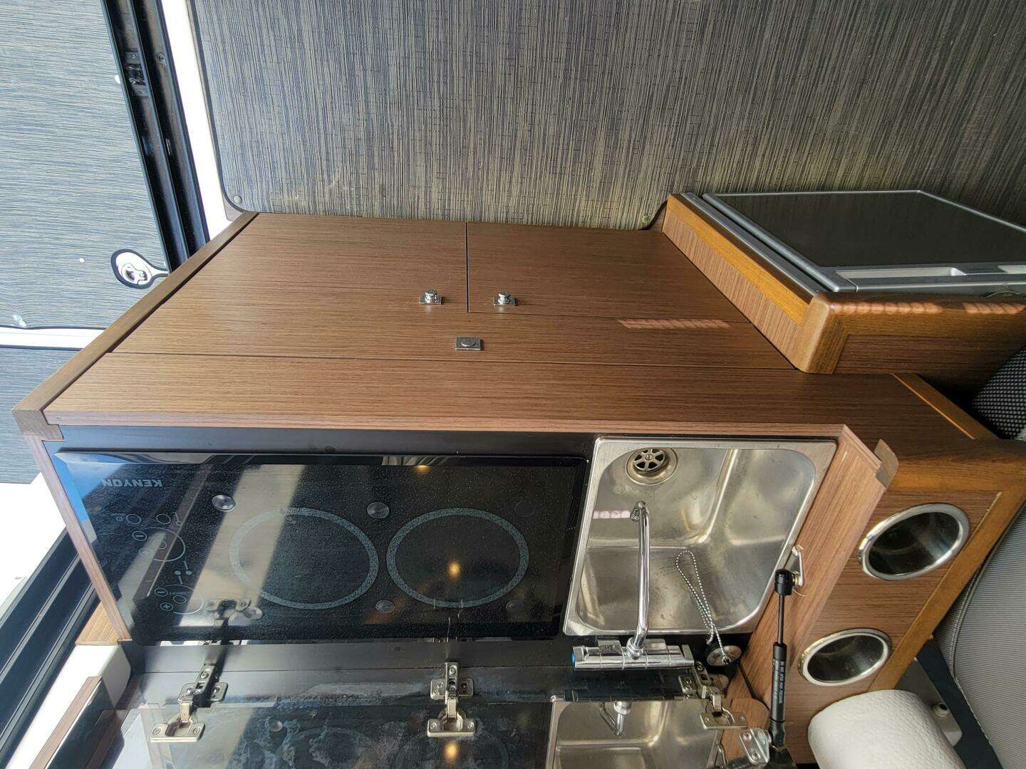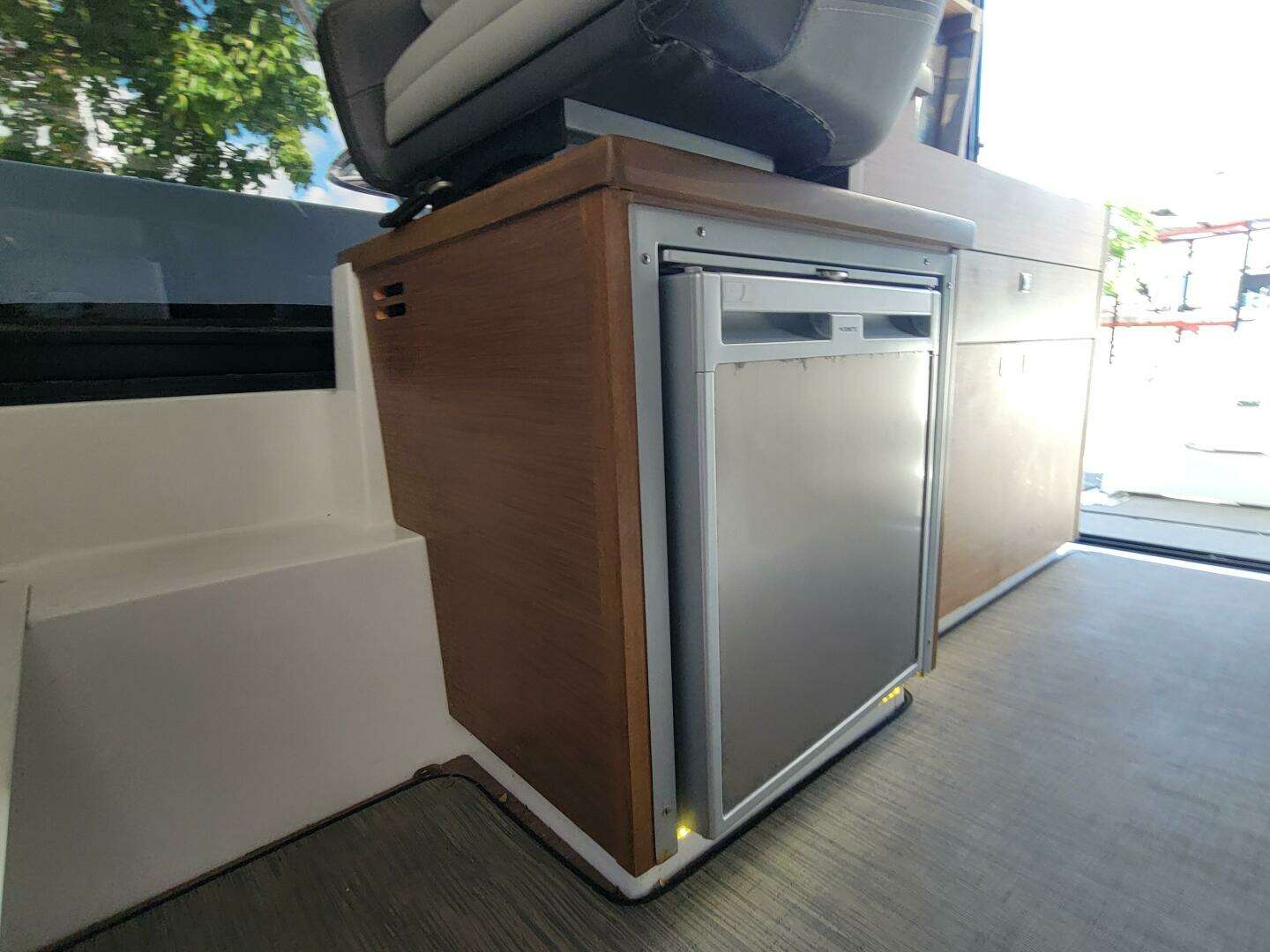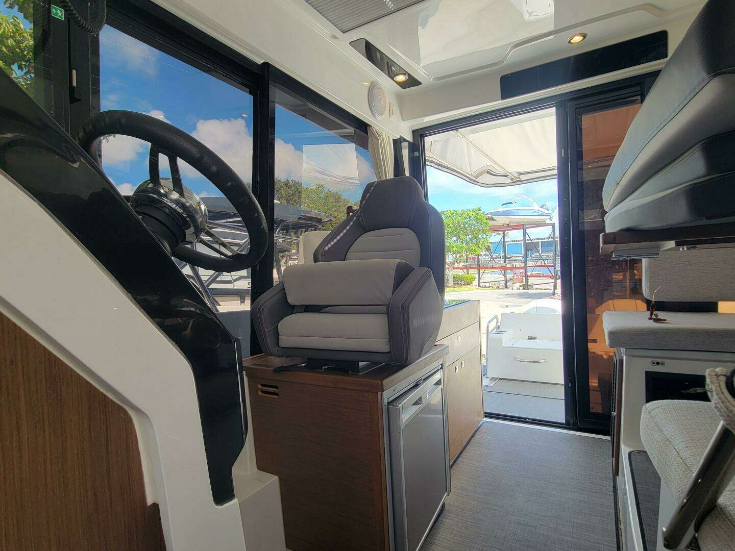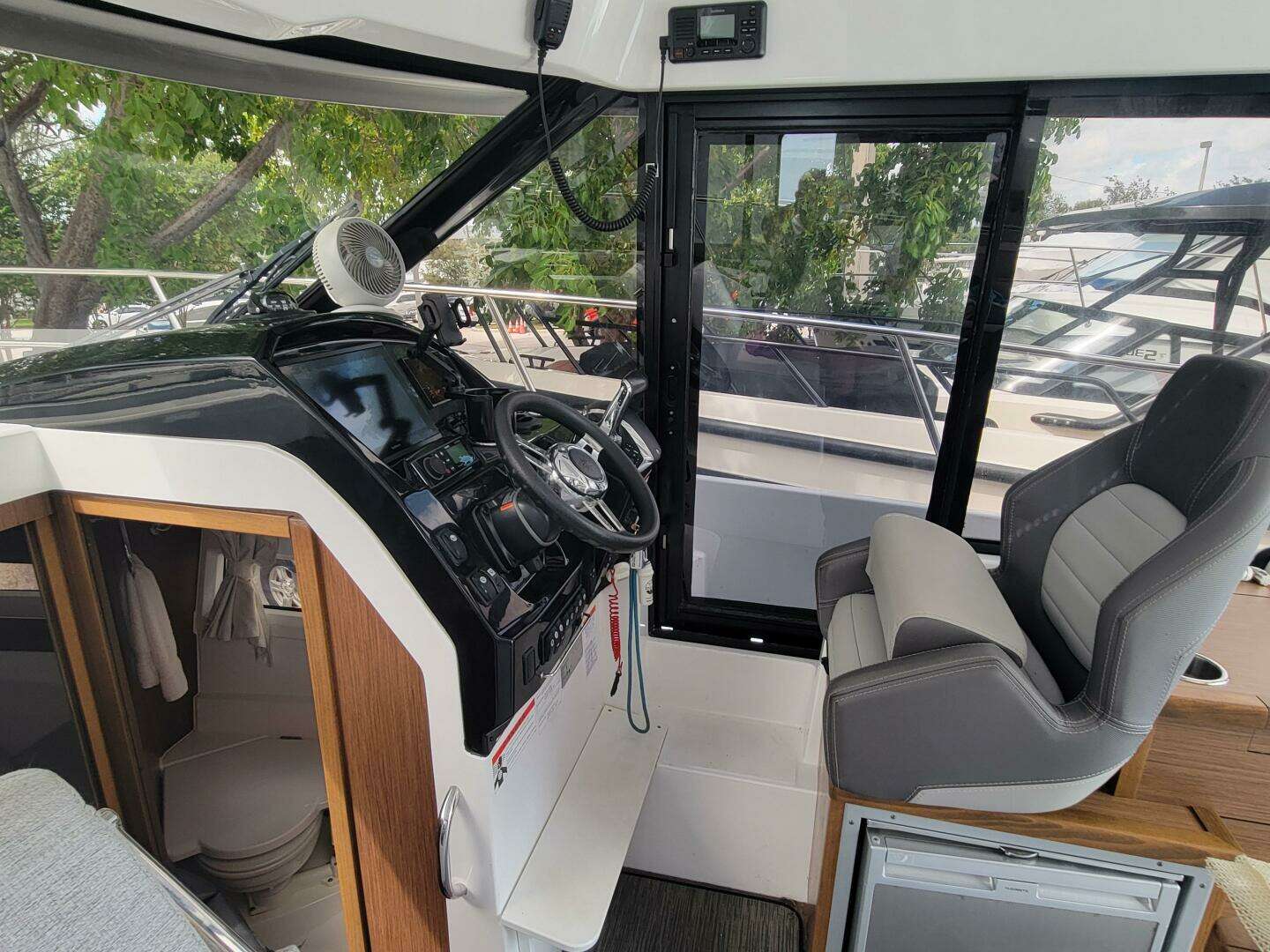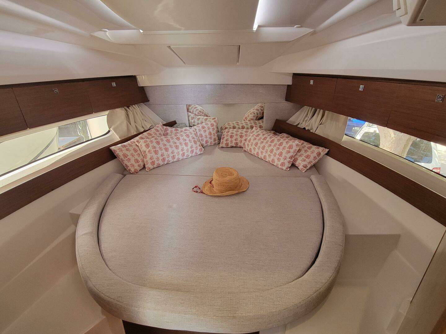 The NC895 is one of the most popular cabin cruisers with twin engines with over 1800 units sold since 2012. Designed with a modern contemporary cabin design, with room for six to sleep for those overnight trips. Large windows for great visibility, a starboard sliding door for easy access and communication with the outside, a generator to keep all systems running in comfort while cruising, a roof rack for paddleboards and other equipment make this cruiser a perfect family cruiser. For sandbar outings the boat is equipped with a removable large sunshade and comfortable sunbathing cushions to lounge at the bow area and an extended canvas bimini top in the cockpit for sun protection when dining al fresco or when converted to lounging.