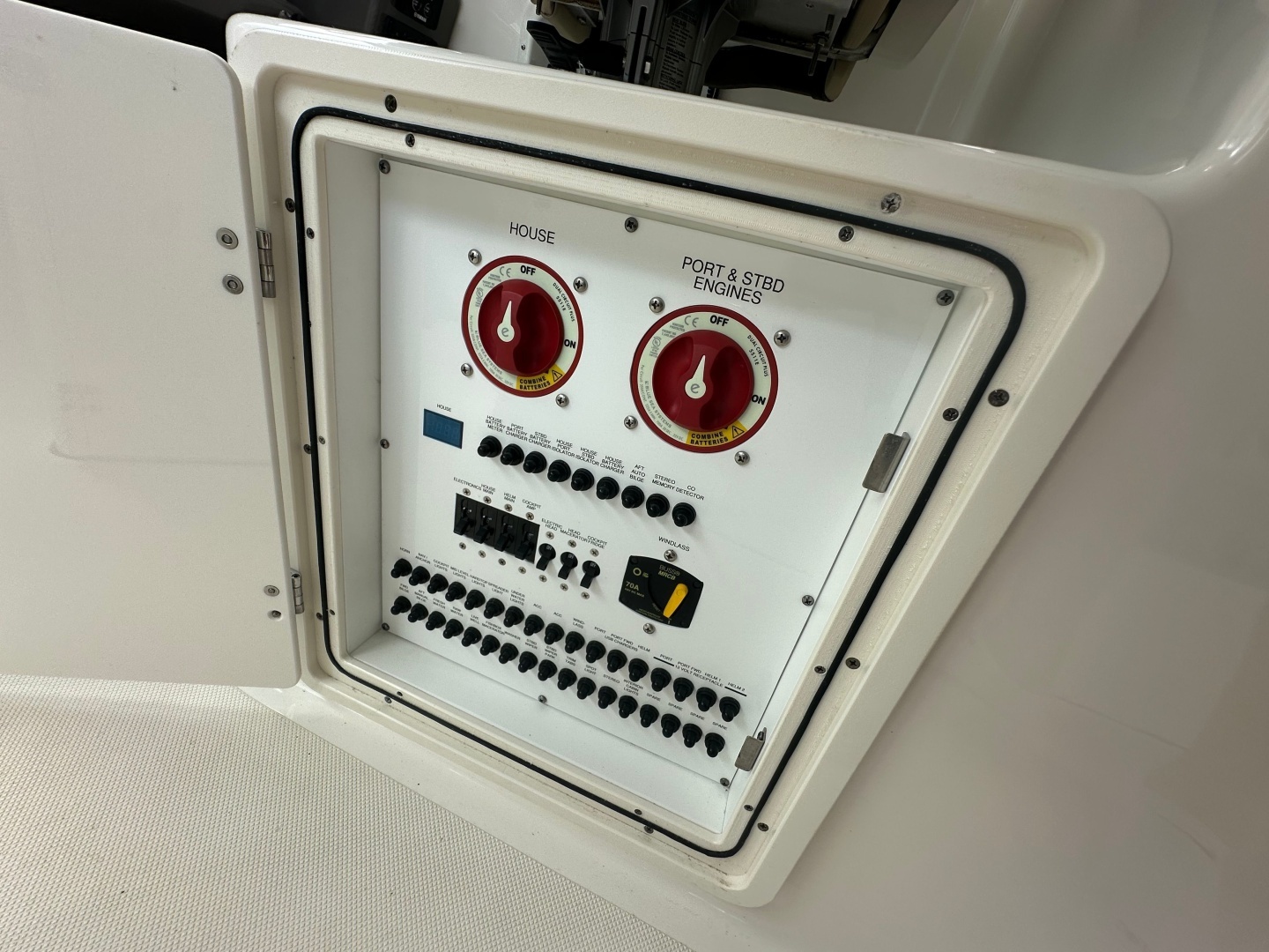 She is stacked with Dual Garmin 14" screens with radar and dual transducers, vhf, lenco trim tabs, 30 amp shore power, swim ladder, tow bar, isinglass enclosure, rocket launcher on hard top, navy cockpit/bow/helm canvas covers, head with sink, fresh/raw water wash down, windlass anchor, cockpit storage tackle drawers with sink and cutting board, and much more... Inquire with the Listing Broker Chase Sutton to learn more.