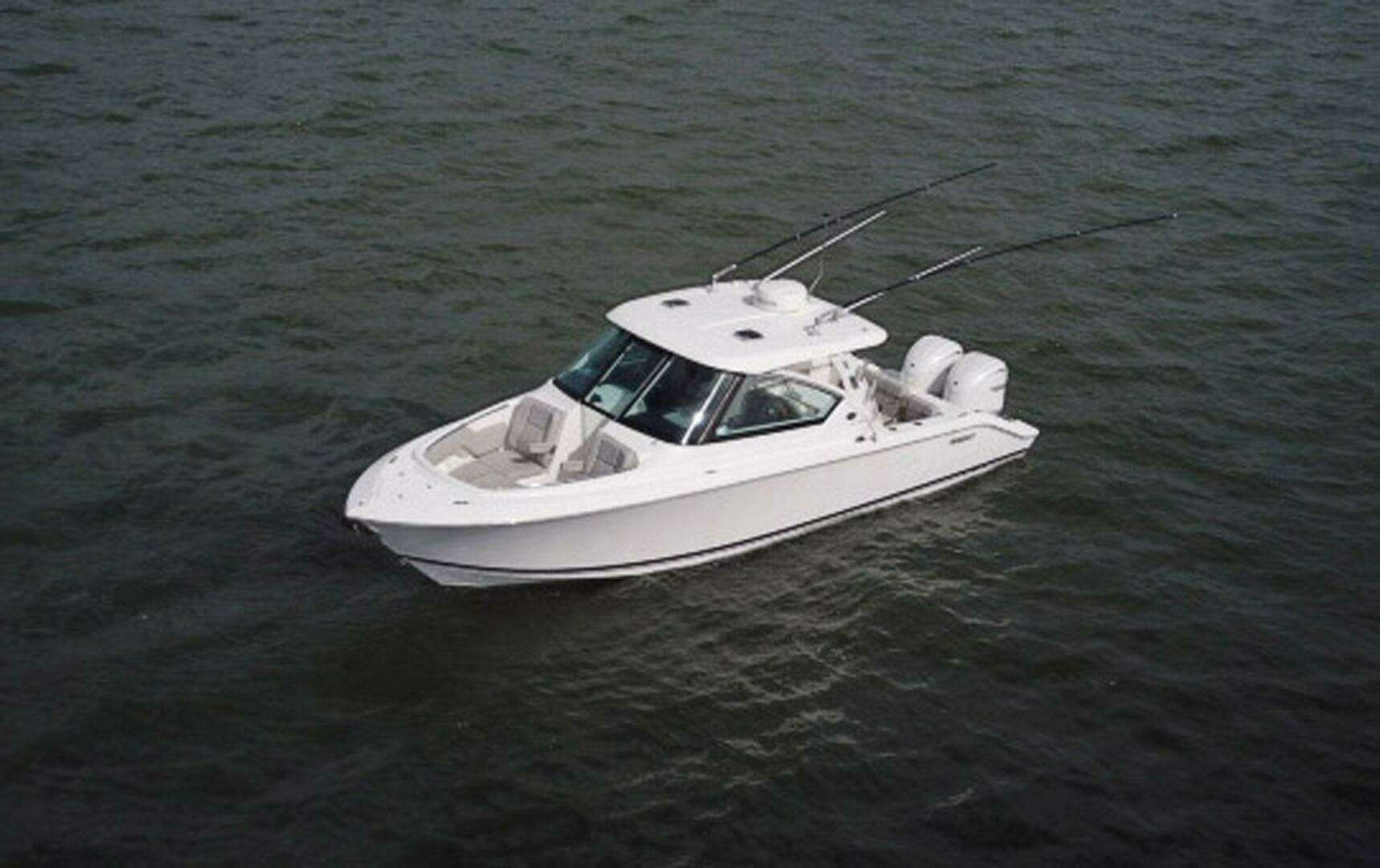 - Molded fiberglass hardtop with integrated visor and radar/outfitting mounts
