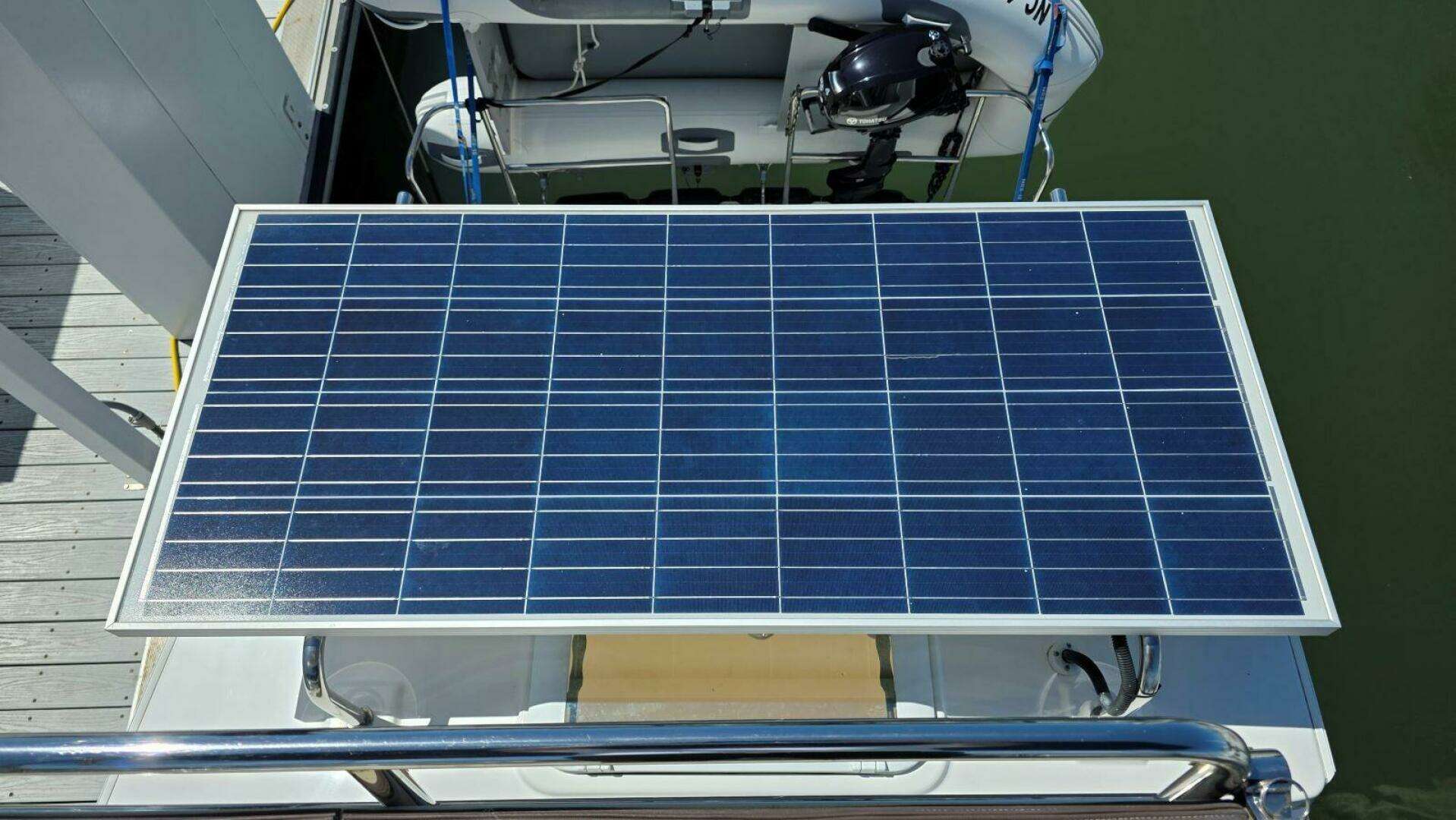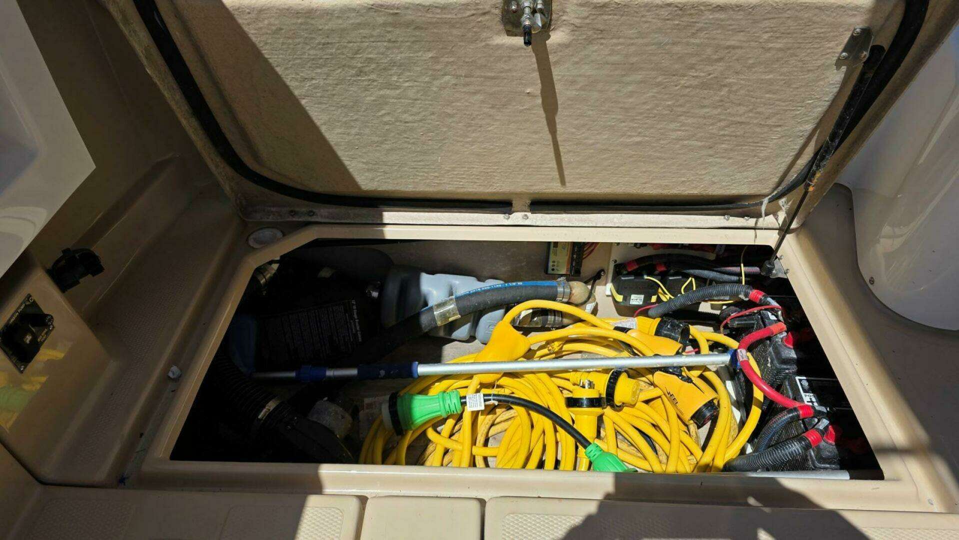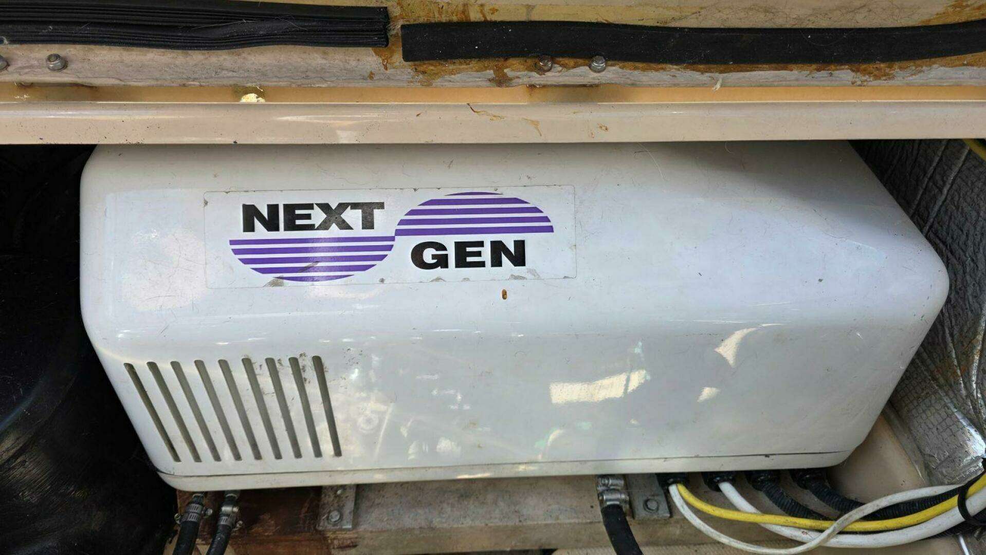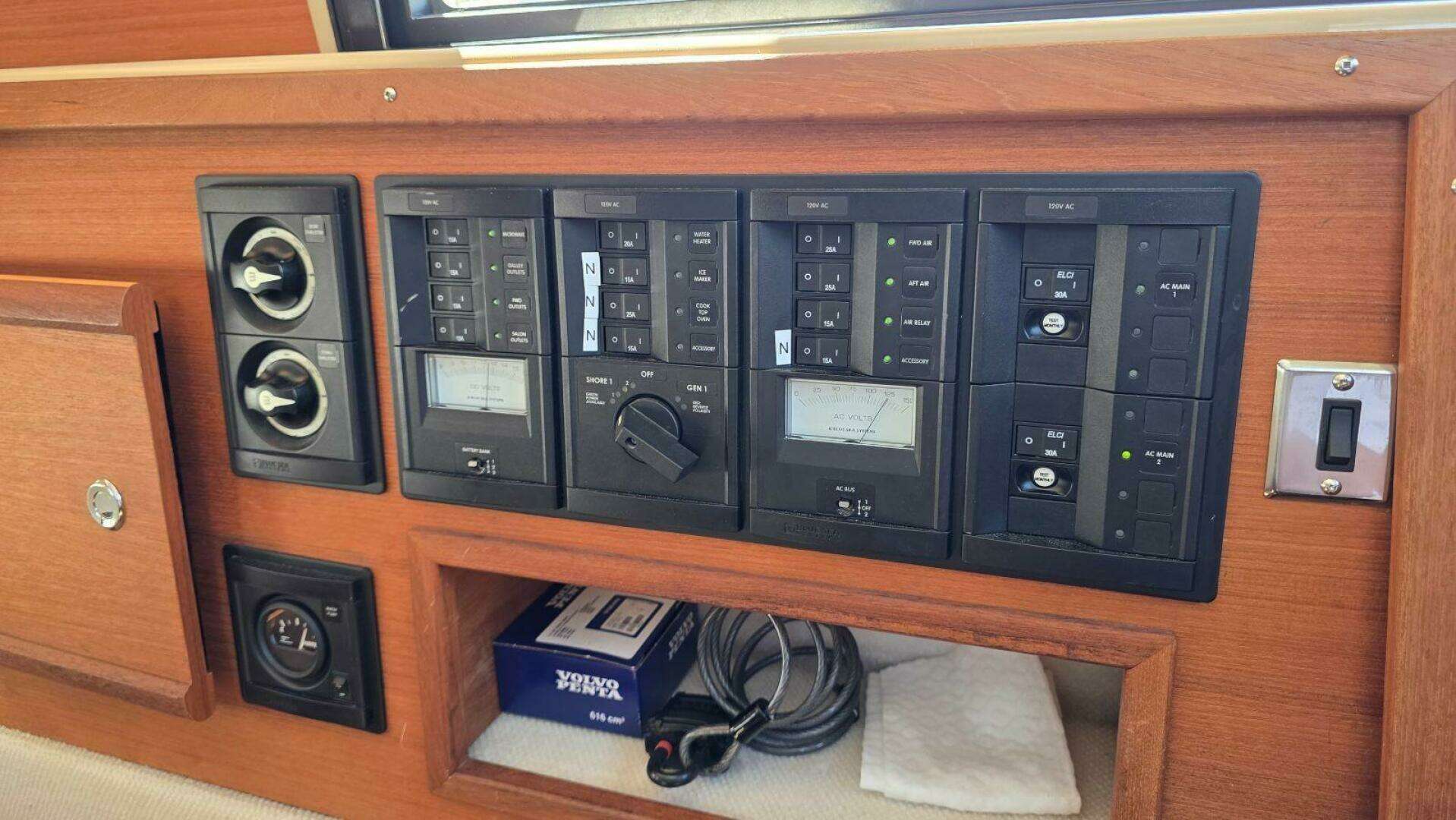 The vessel is also equipped with a generator showing under 200 hours, providing reliable power for onboard systems, air conditioning, and galley appliances when away from shore power.