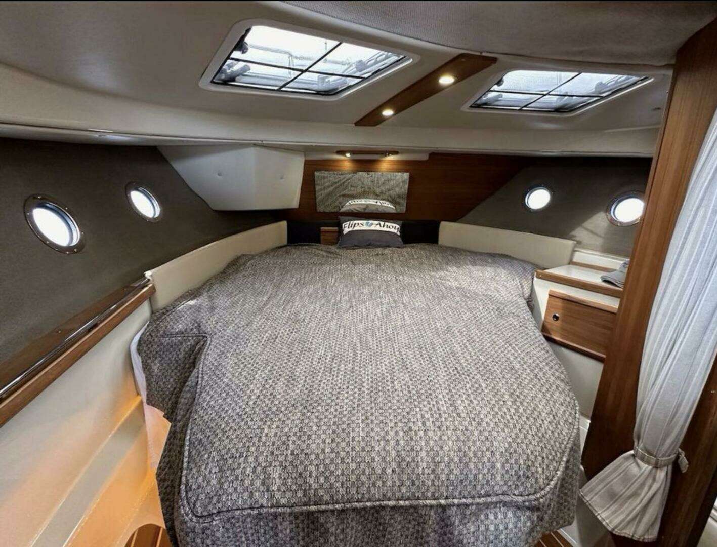 The current owners have invested heavily in reliability and comfort: new solar, new inverter, new thruster props, new AIS/VHF antenna, fresh bottom paint, and a full suite of new canvas and exterior shades. Inside, Flips Ahoy is warm and inviting with a custom Yacht Bedding package, convertible salon seating, and the versatile R‑29 S layout that opens seamlessly to the cockpit.