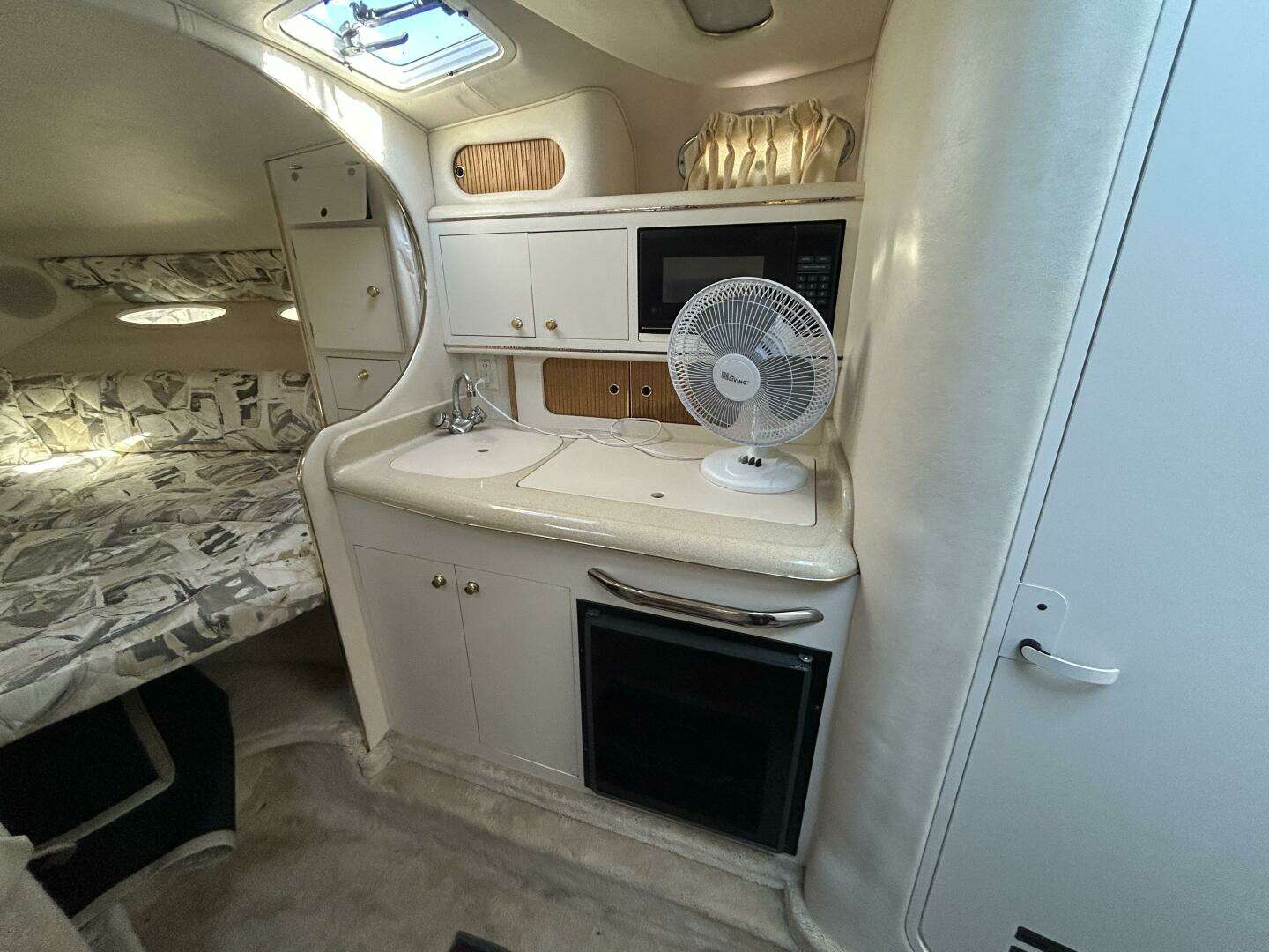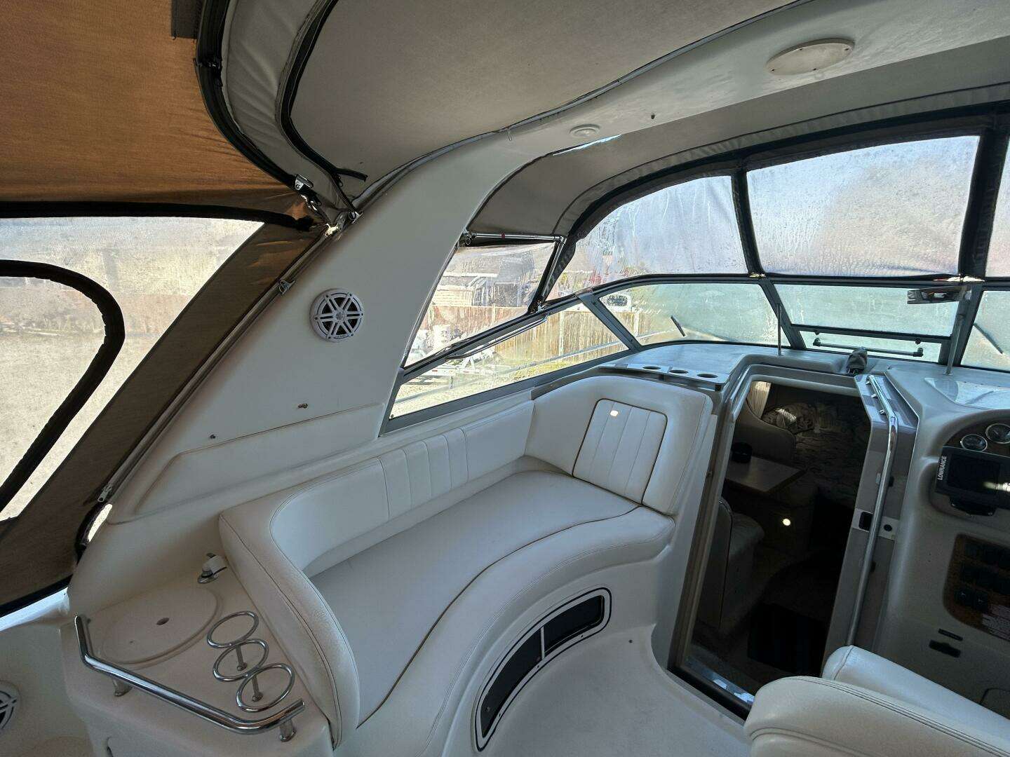 Outside, the cockpit is a social hub with plenty of seating for guests, ideal for entertaining or relaxing in the sun. The helm offers intuitive controls and excellent visibility, making every voyage smooth and enjoyable. With a stylish profile and seaworthy hull, this Sundancer delivers confident handling and a smooth ride.