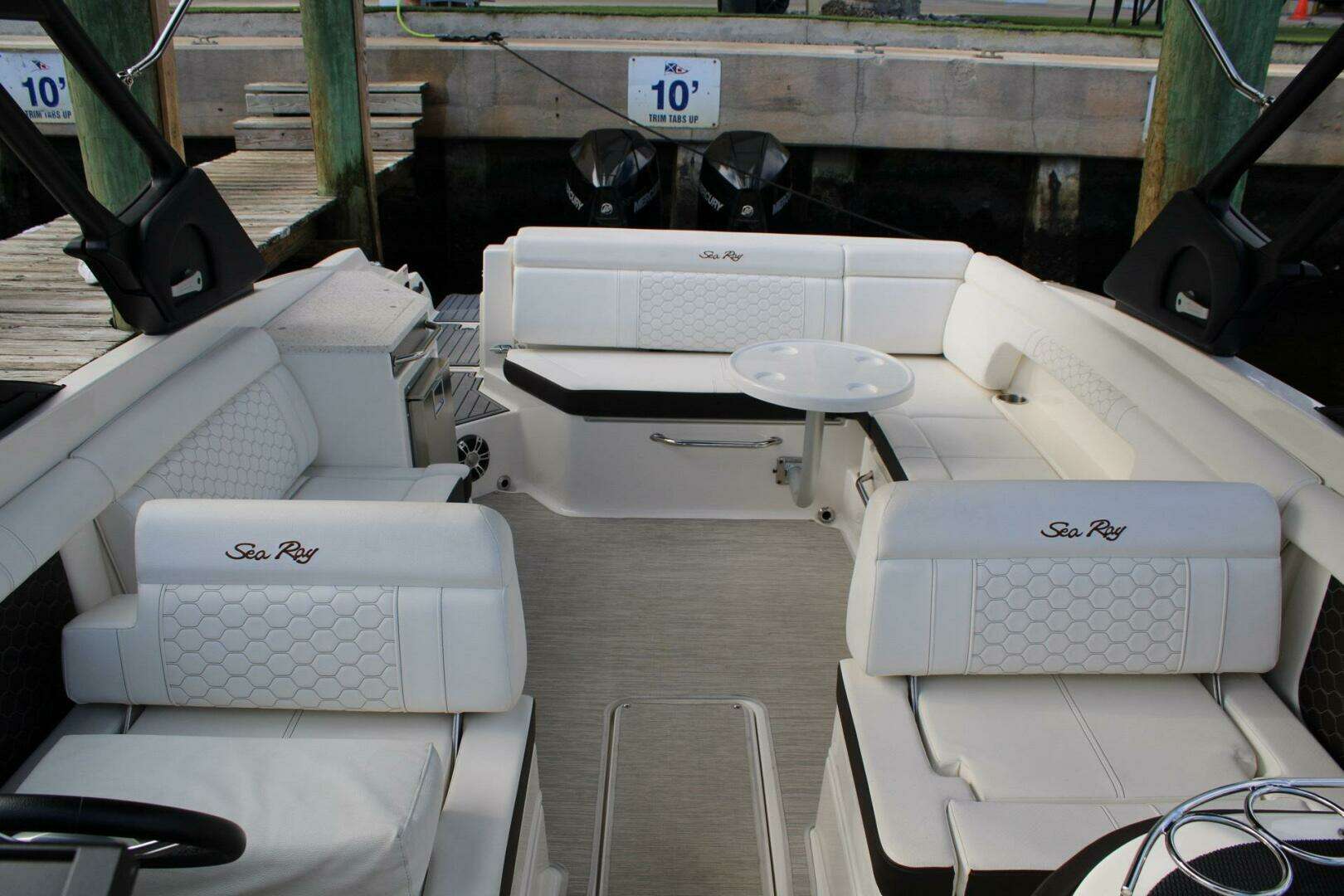 This 2021 Sea Ray 290 SDX is a well-equipped, low-hour example of one of Sea Ray’s most popular large outboard deck boats. Powered by twin Mercury 250 outboards with Joystick Piloting for Outboards (JPO), this boat offers exceptional performance, easy handling, and stress-free docking — perfect for both experienced captains and newer boaters. Designed for entertaining, cruising, and watersports, this 290 SDX features premium upgrades throughout, abundant seating, a spacious head, and thoughtful amenities that make long days on the water comfortable and enjoyable.