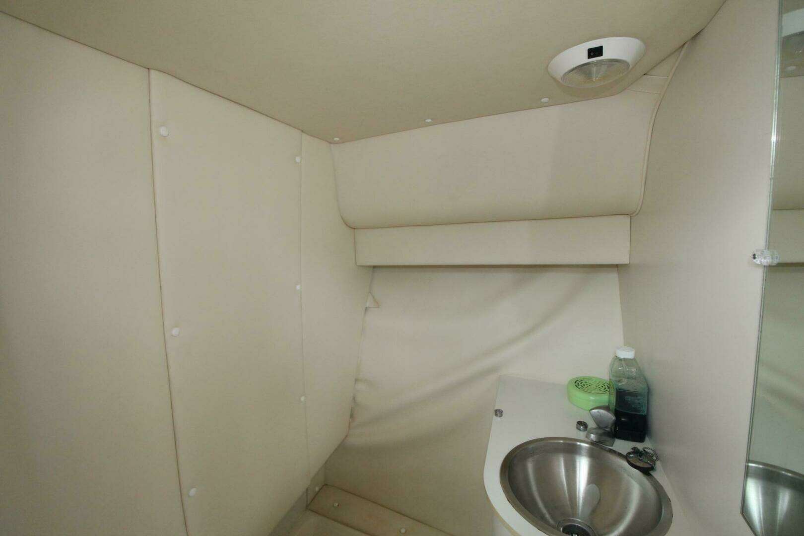 Additional DescriptionThe 2900 Coronet cabin is designed for the day boater or the overnight cruiser. Amenities include a 6'4" V-berth (with filler cushion), hanging locker, mini galley with microwave, sink, storage, and private head with vanity, and hanging locker.