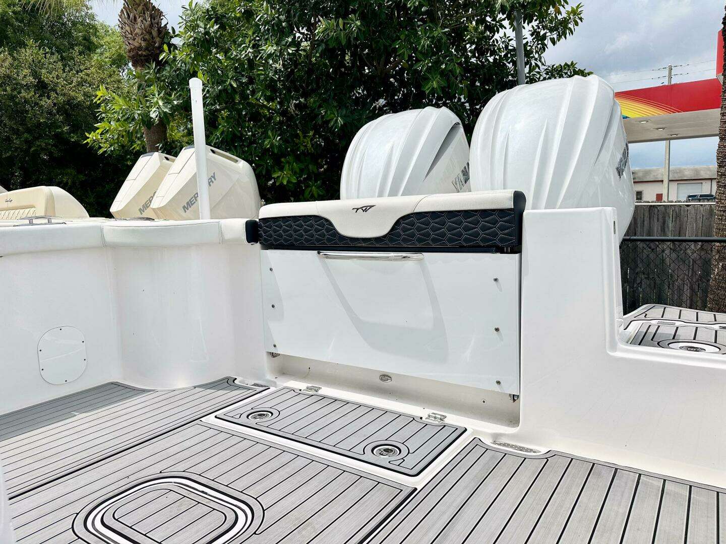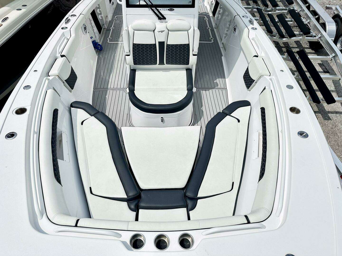 2024 Tidewater 292CC Adventure powered by twin Yamaha F300s with Helm Master EX joystick. Only 50+ hours and loaded with options—dual Garmin 1243xsv displays, CHIRP transducer, VHF, Seadecking, full cover, and trailer. Transferable factory and Yamaha warranties included.