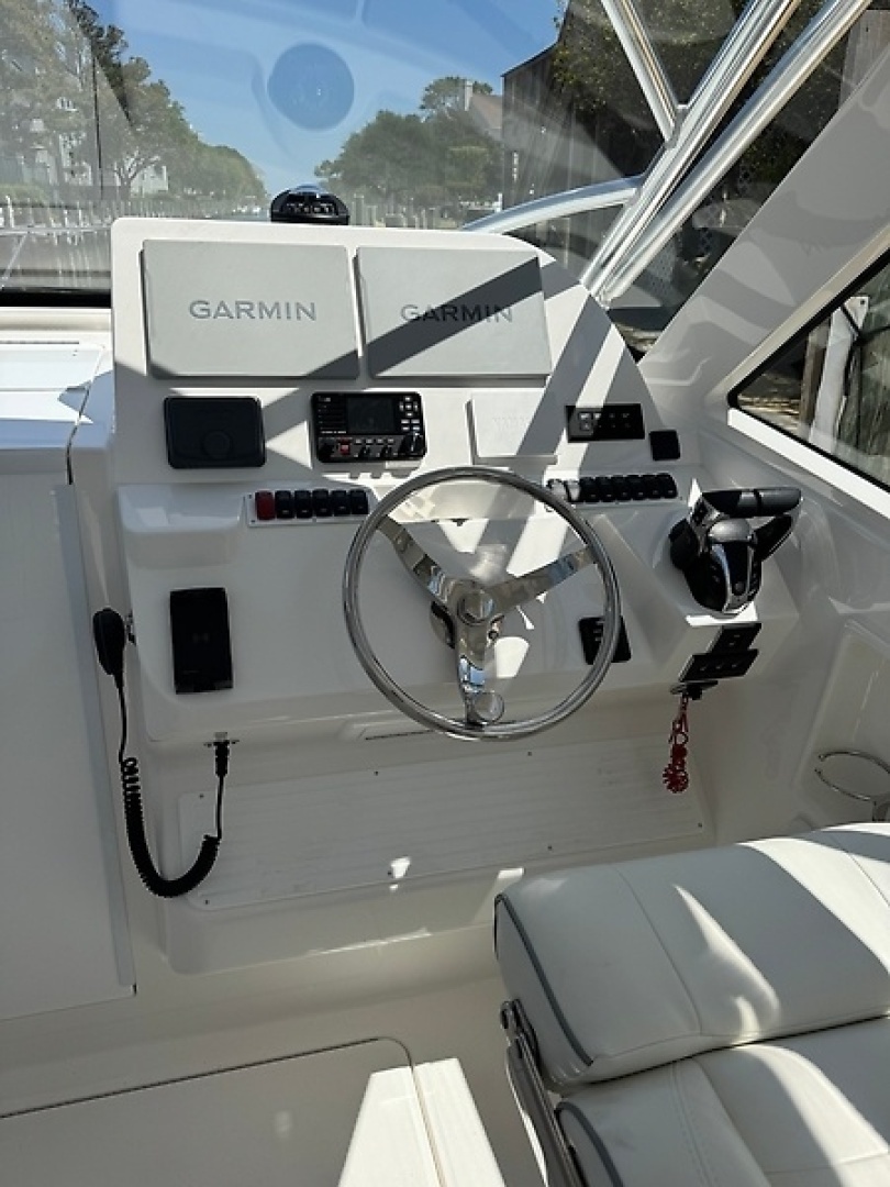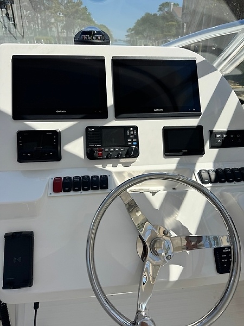 This is a like new Albemarle 30 Express with tower! Engines have less than 140 hours since new! It features a full cabin with v-berth, enclosed head, and galley. She is a fast pocket fisherman with cruising accommodations!