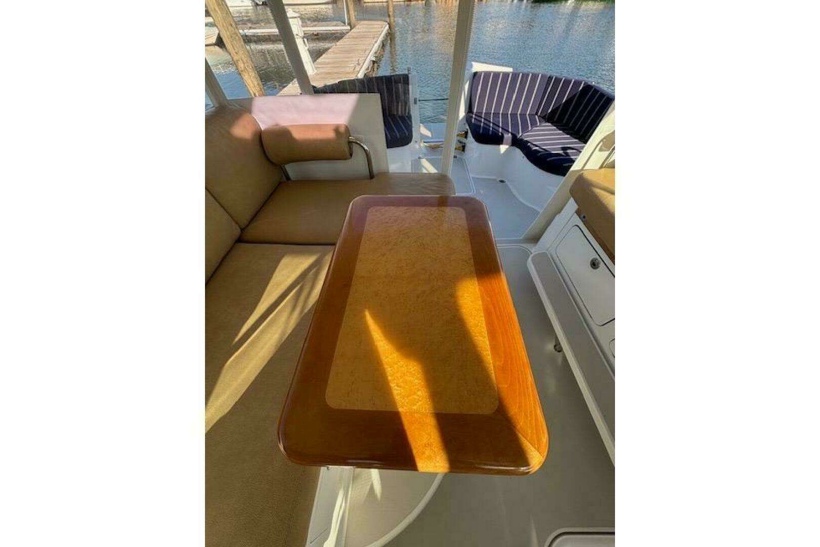 - Raised L-settee seating aft of helmsman