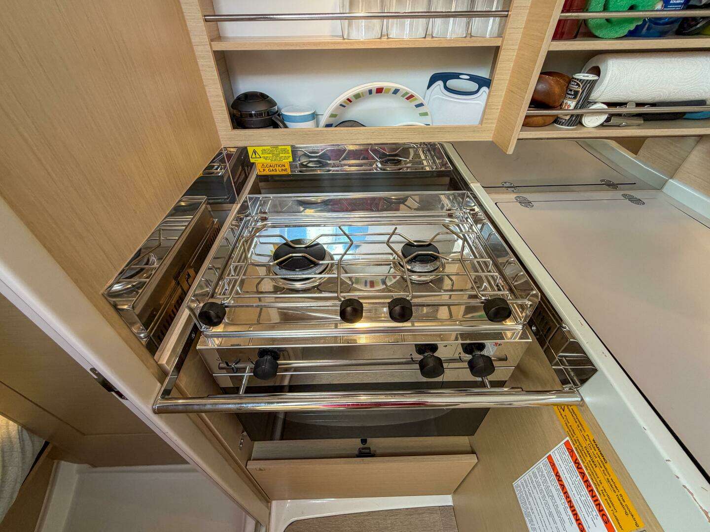 - Propane 2-burner gimbaled stove and oven with solenoid switch