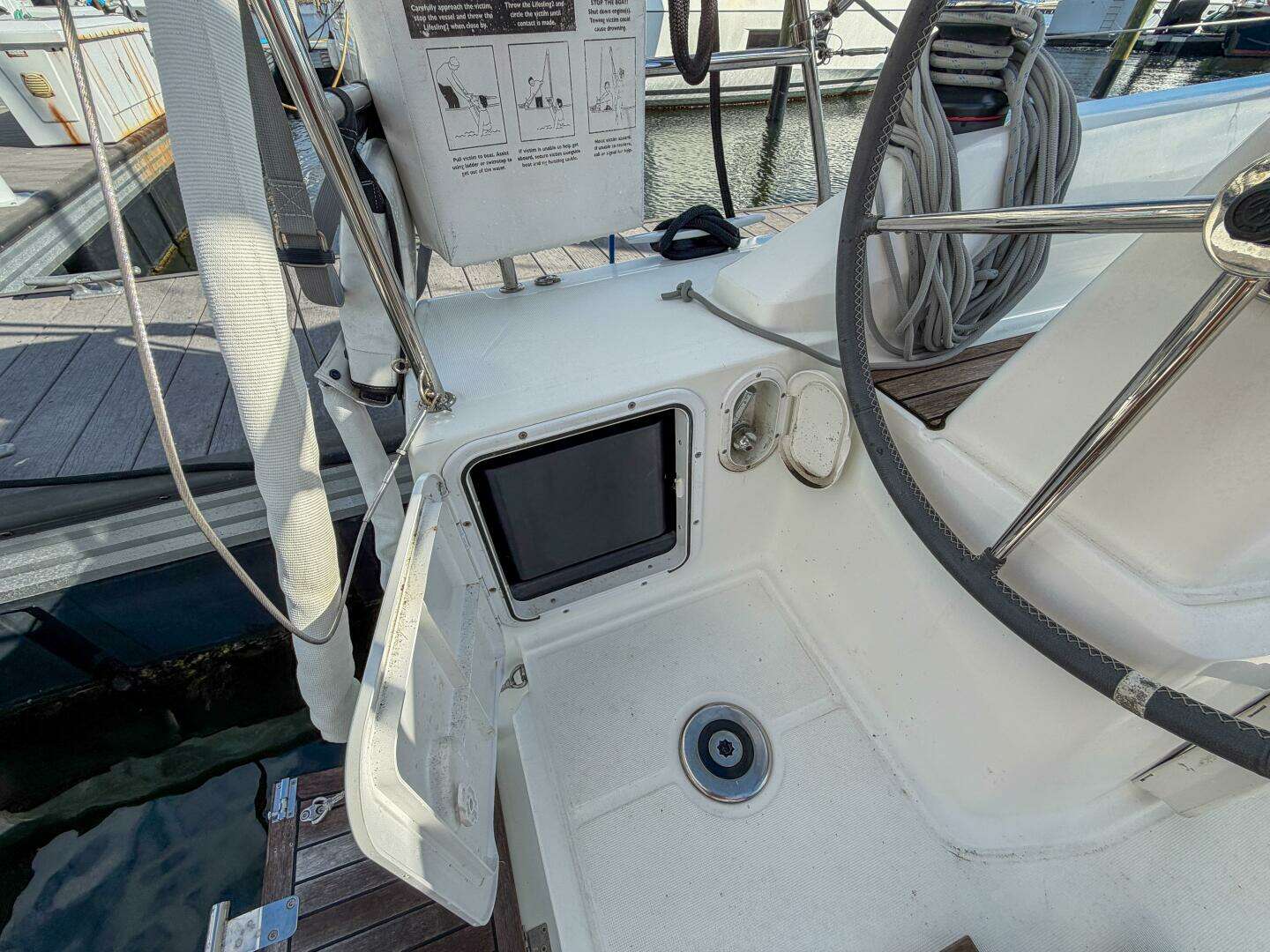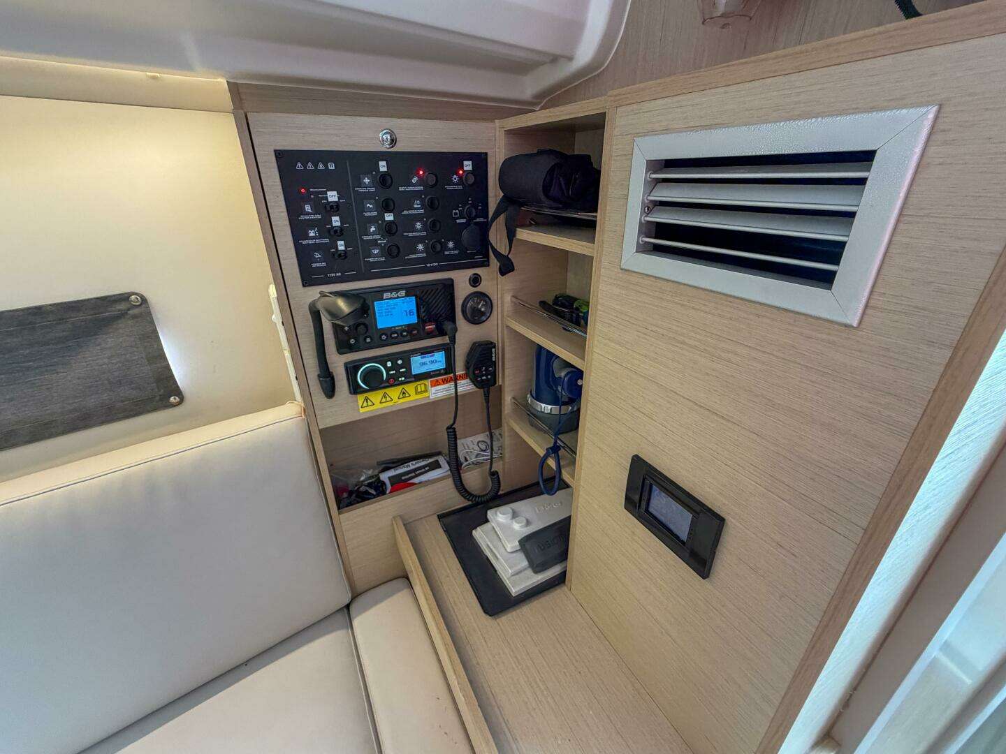 - B and G Multifunction chartplotter mounted to the starboard cockpit bulkhead allows the whole crew to monitor vessel data.