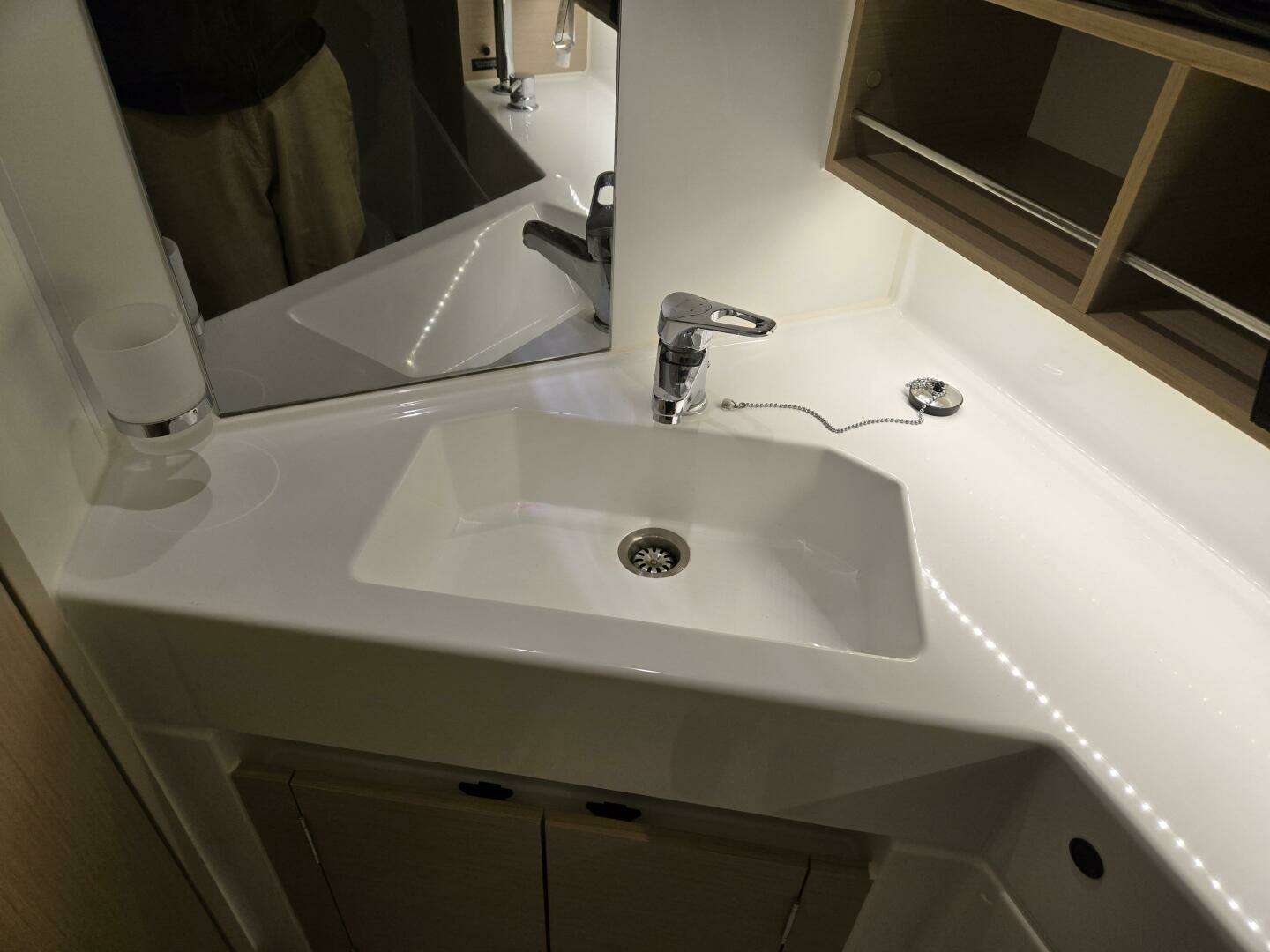 with shelves - Open shelves above • Open high shelving along the hull • 2 LED reading lights • Indirect LED lighting