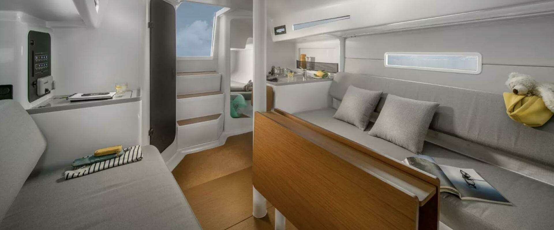 Below deck, the boat has a capacity of 4 people divided between two cabins. The First 30 is the perfect boat for cruising with family or friends. Cruising is truly enjoyable, with a comfortable saloon, fully-fitted galley and smart storage spaces.