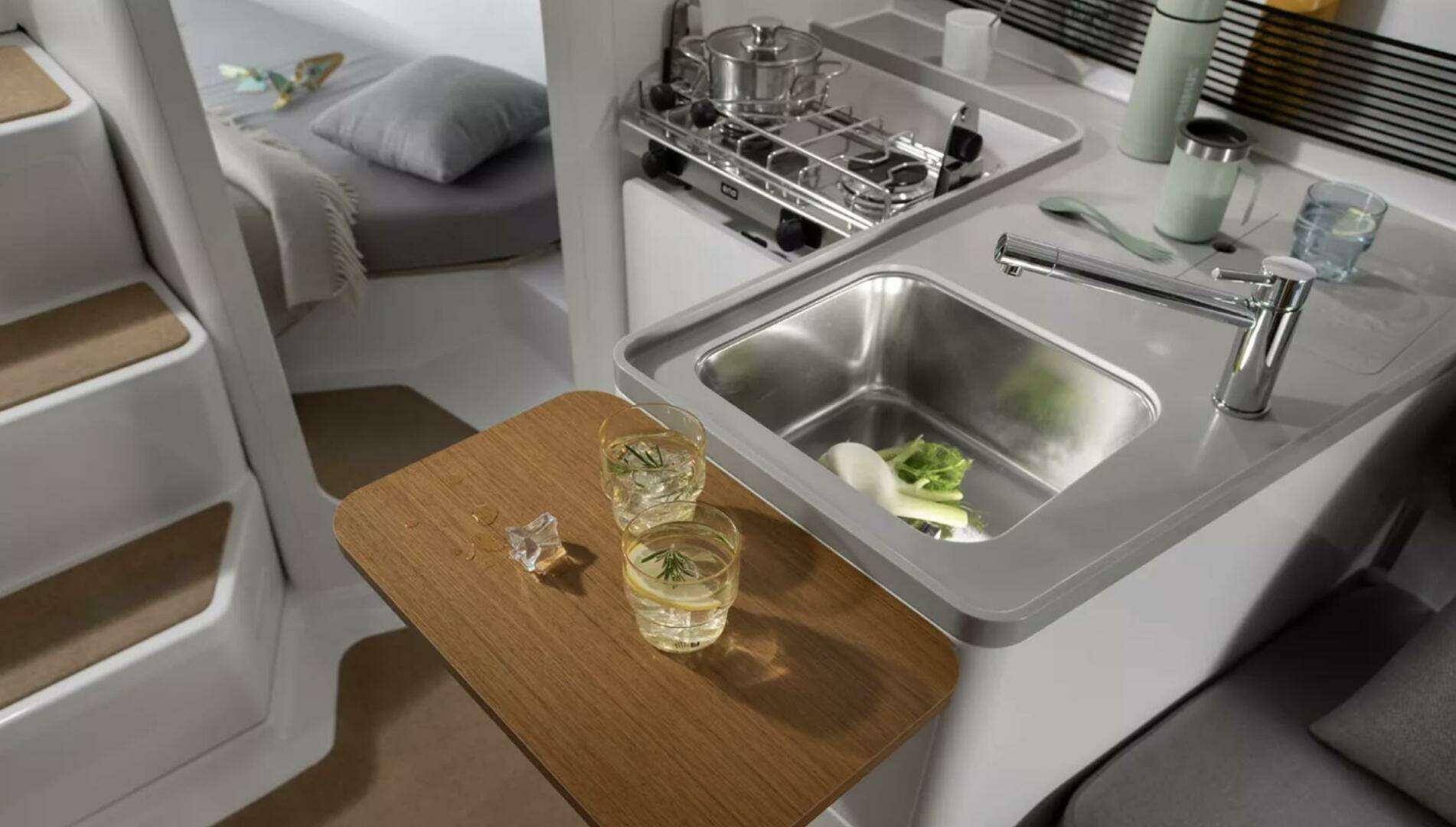 With the Premium Pack option, you have additional features and the interior is more stylish with top-quality upholstery, extra lounge backrests, a chopping board, choice of colours and materials, and mood lighting.