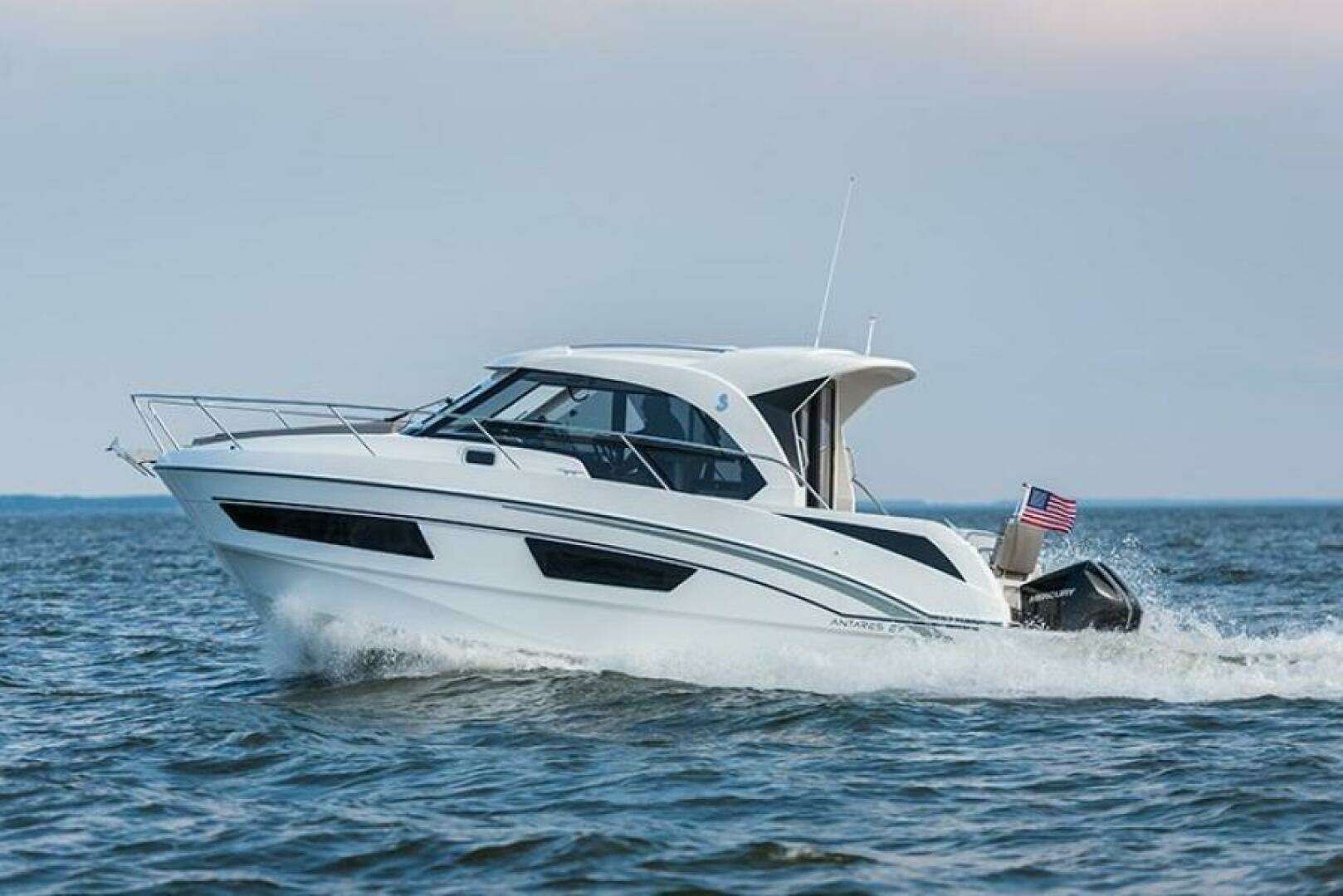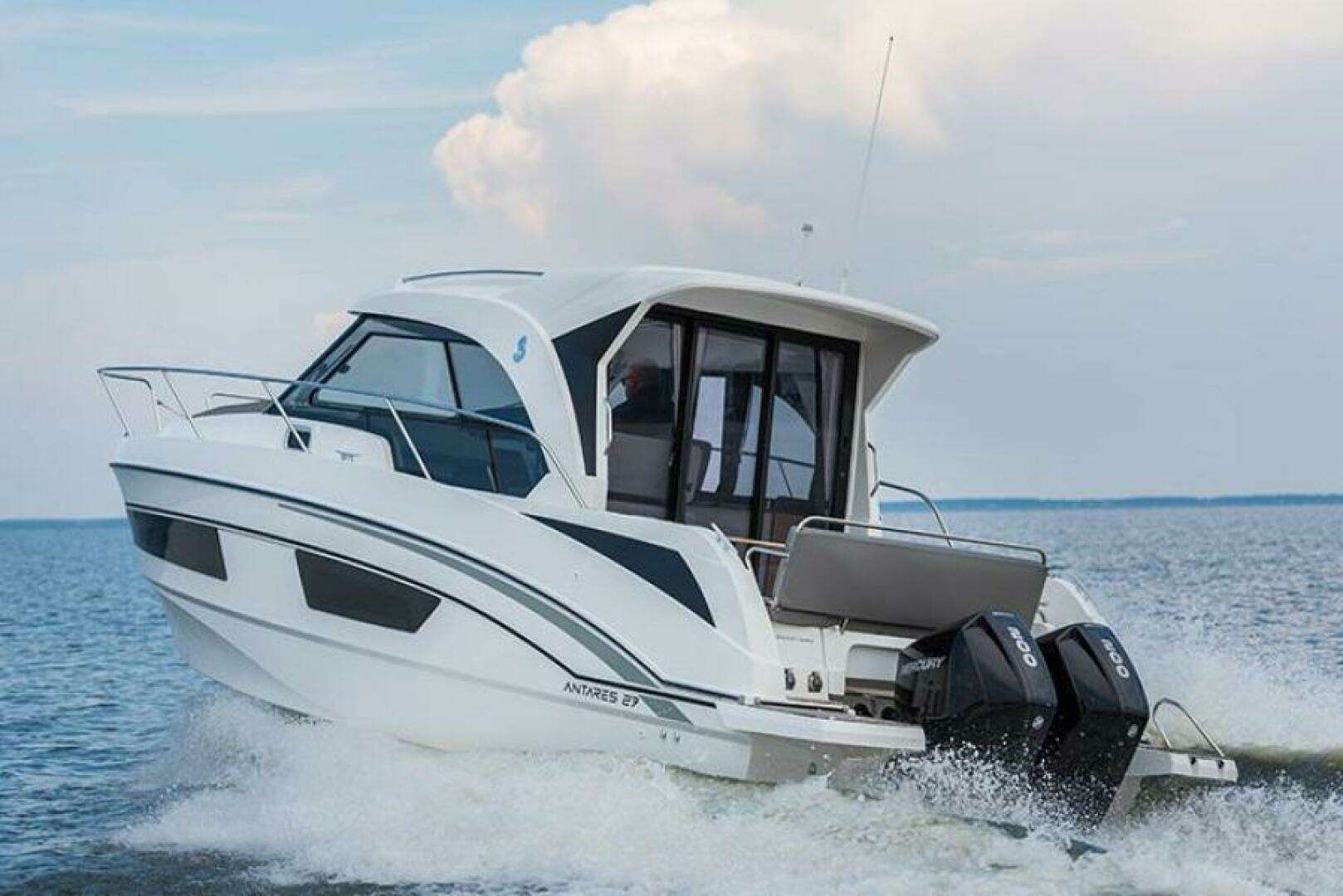 The 2026 Beneteau Antares 9 V2 is a modern weekender cruiser that blends sleek design with spacious comfort and premium features. With a refined hull, twin outboard power, generous fuel capacity, and bright, functional interior cabins, it’s ideal for family cruising and coastal adventures.
