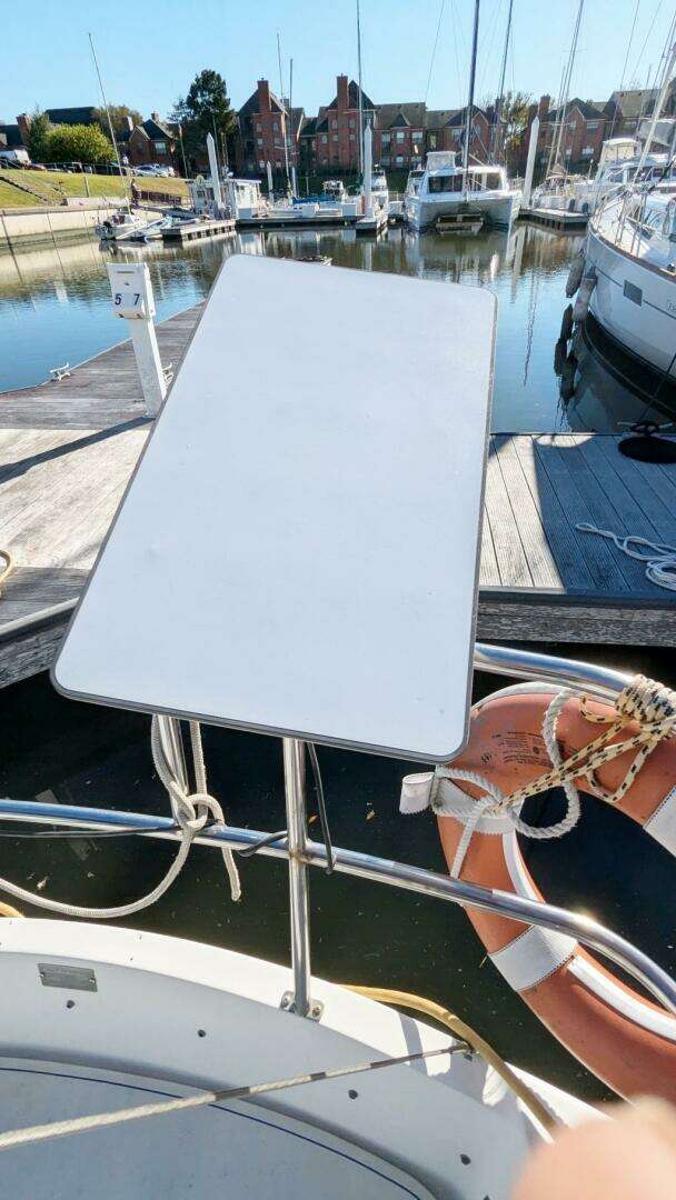 - Seating and Berths: The dinette has ample seating and can be converted into a large double berth by lowering the table and adding filler cushions. Opposite the dinette to starboard is a straight settee which can serve as a single berth. The entire boat can sleep up to seven people with the addition of a forward V-berth and an aft quarter berth.