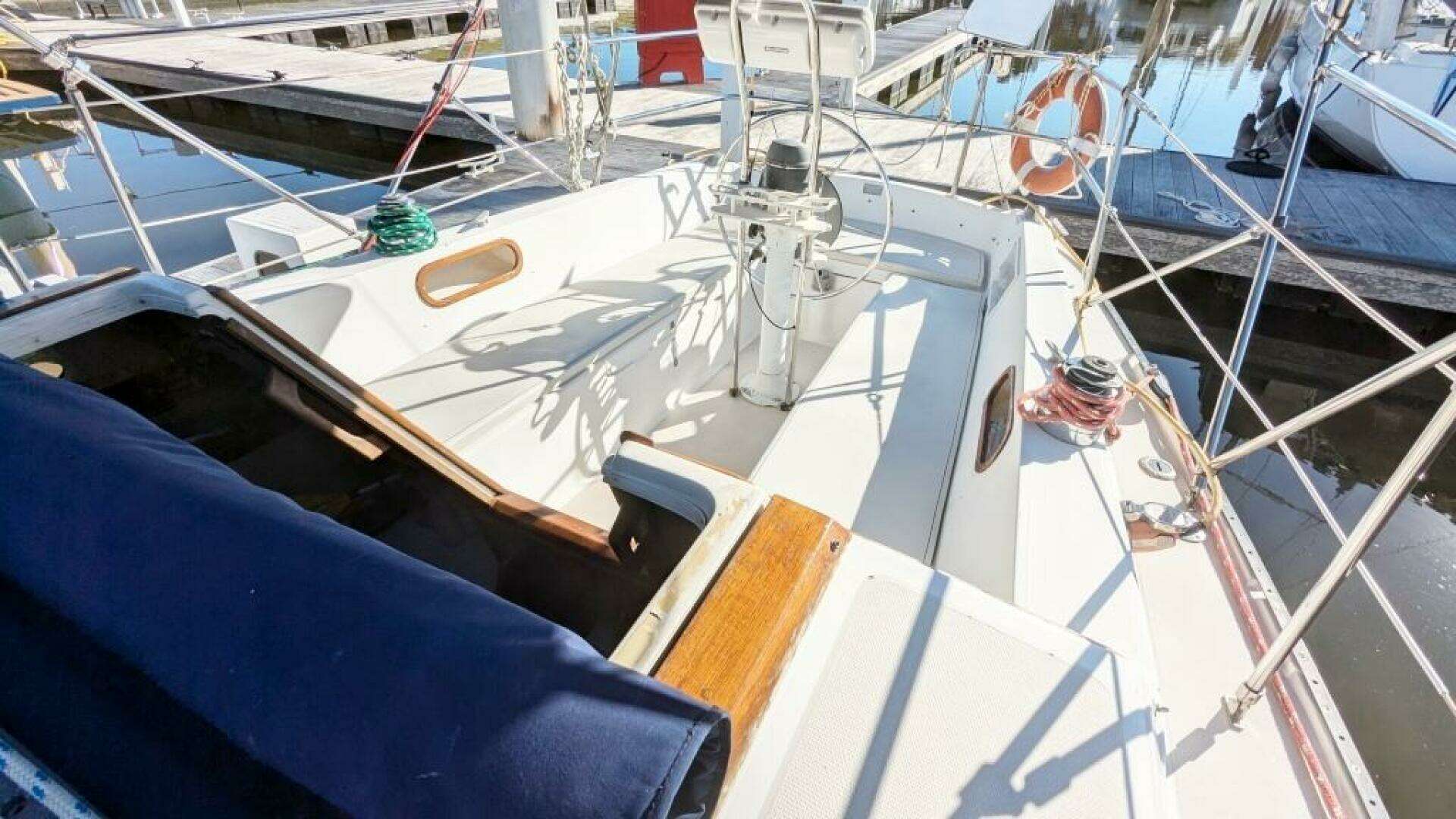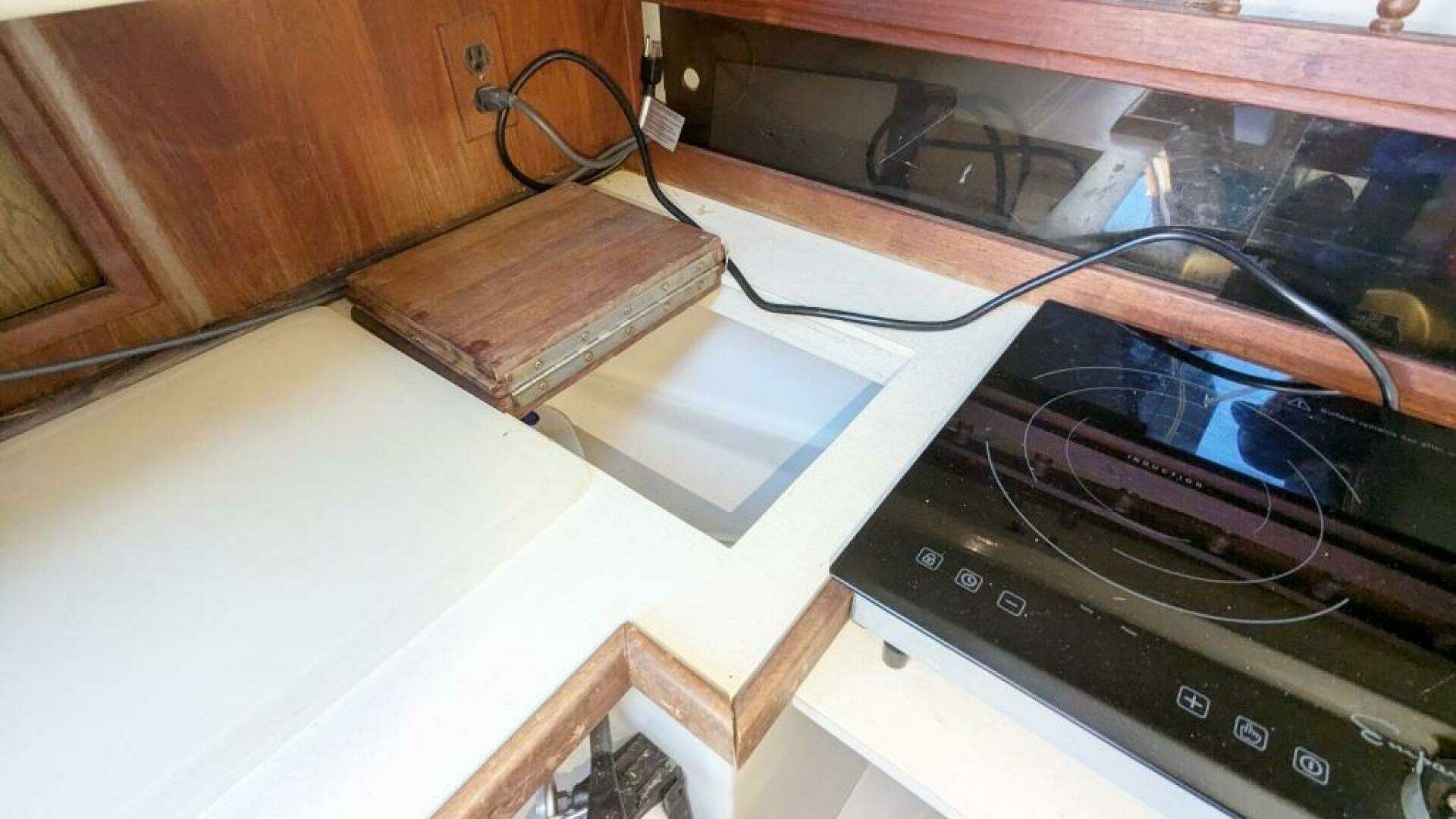- Galley and Nav Station: Aft of the dinette area is the galley to port, equipped with a double stainless steel sink, an icebox, and often a stove and oven. Opposite the galley to starboard is a dedicated navigation station, similar to those found on larger yachts, with storage for charts.
