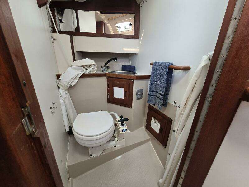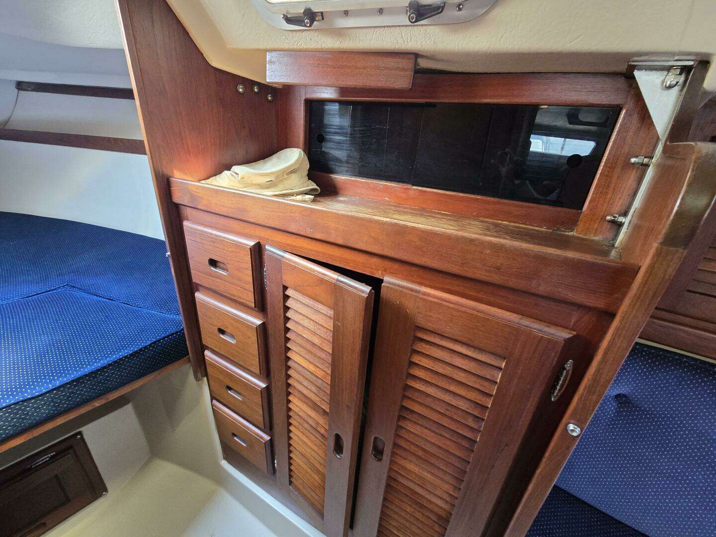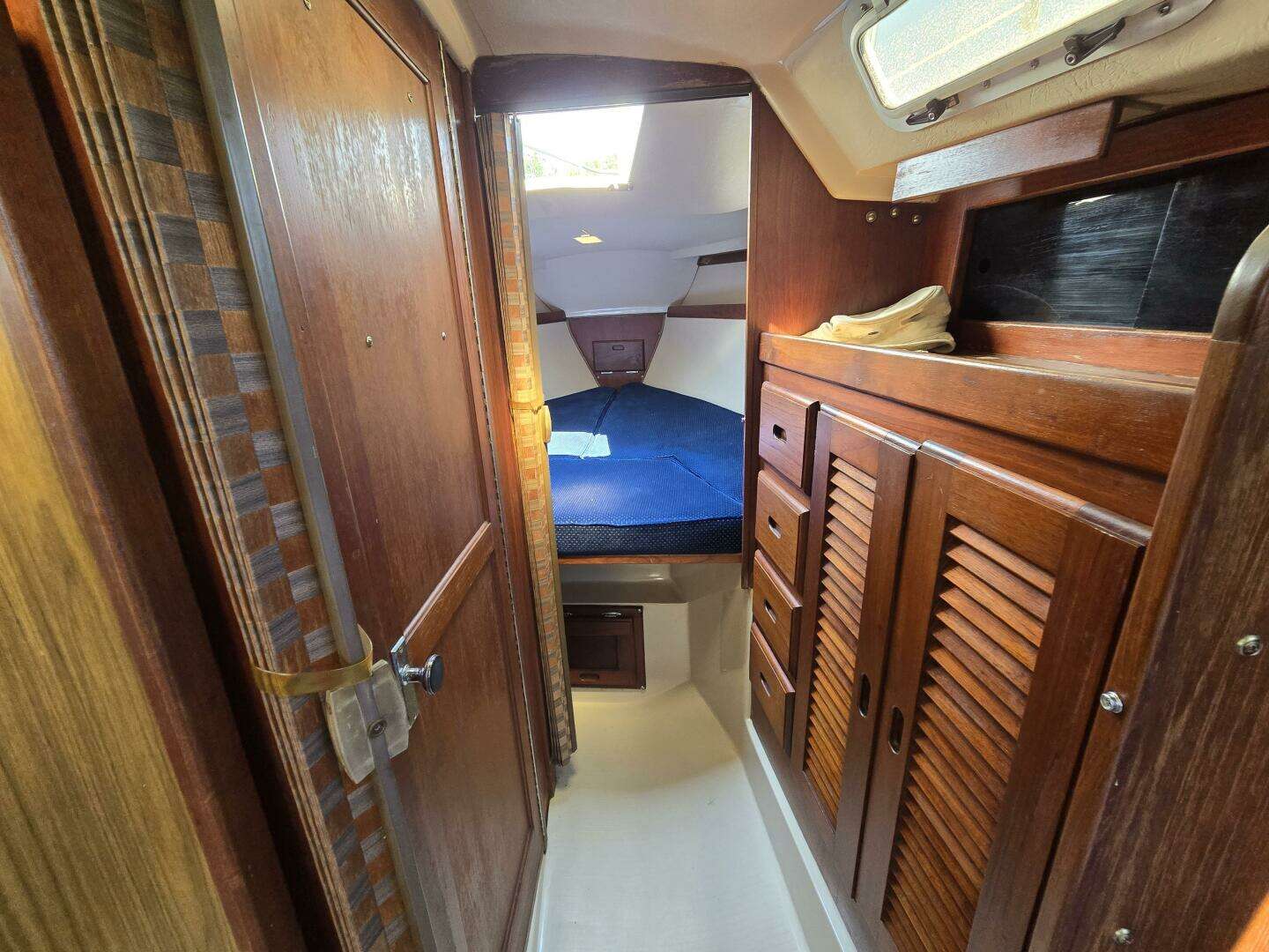 Key features of Hull design and construction: The hull is constructed from solid, hand-laid fiberglass, providing durability and a classic profile. Credo is equipped with the deeper 5’3” fin keel which offers better upwind performance. The rudder is faired into the underbody with a small skeg, providing good tracking and maneuverability. Interior and accommodations Spacious layout: The generous beam (10'10") allows for an exceptionally roomy interior for a boat of its size, often featuring a U-shaped galley and sleeping berths for up to seven. High headroom: With 6'3" of headroom, the cabin feels open and comfortable. Stable sailing: A high ballast-to-displacement ratio and wide beam make the boat very stable and stiff under sail, standing up well in heavy winds. The tall rig option provides more sail area for lighter air performance.