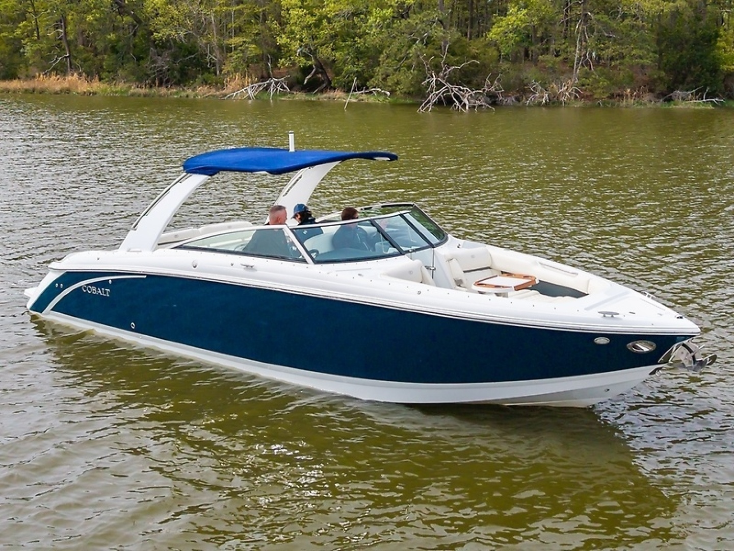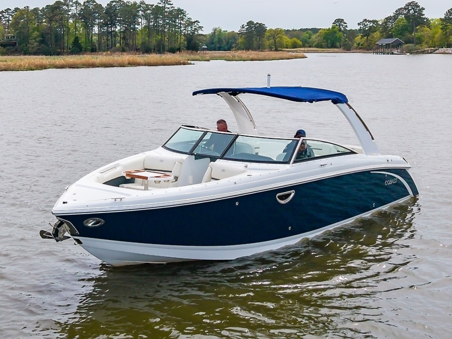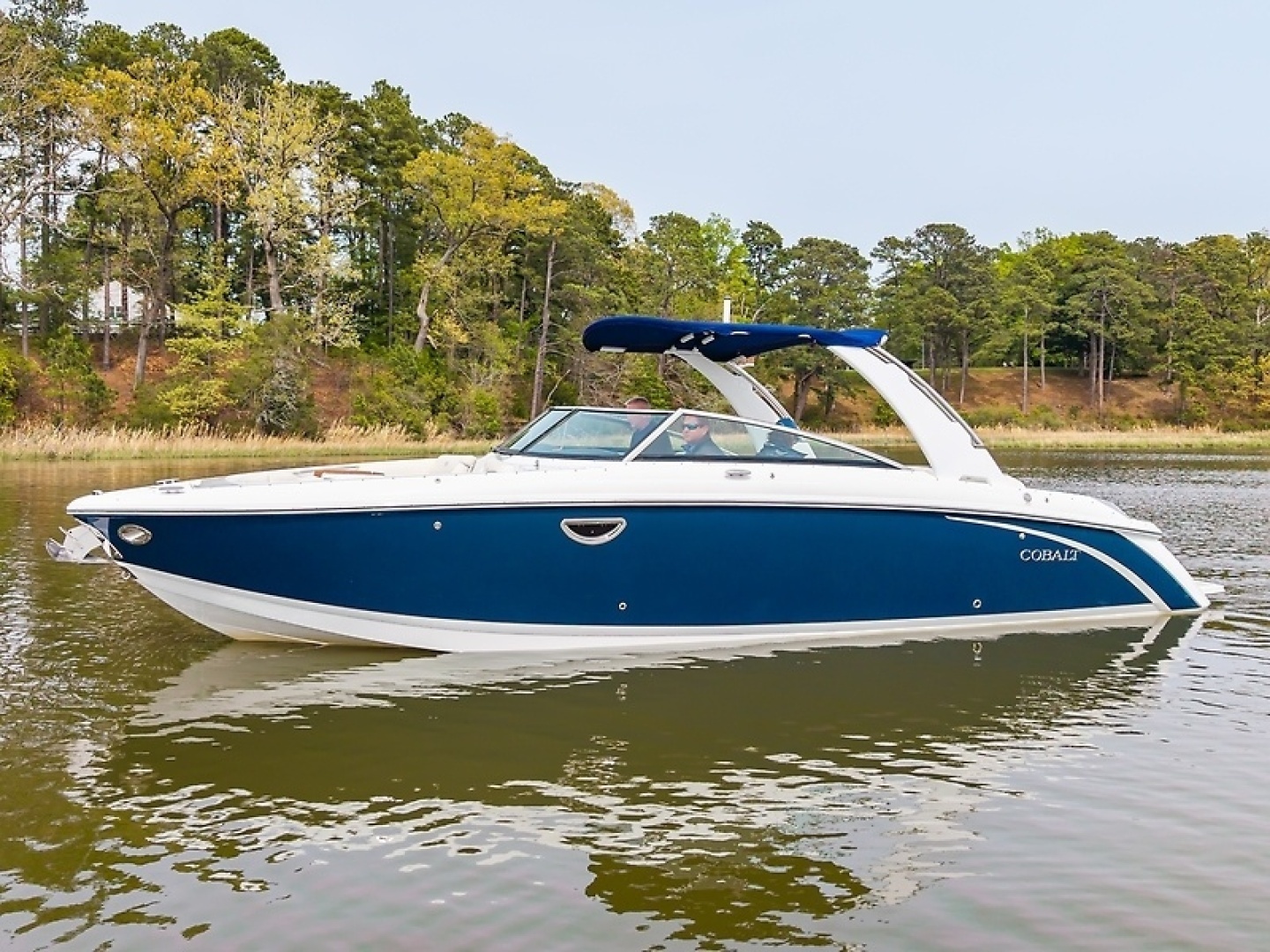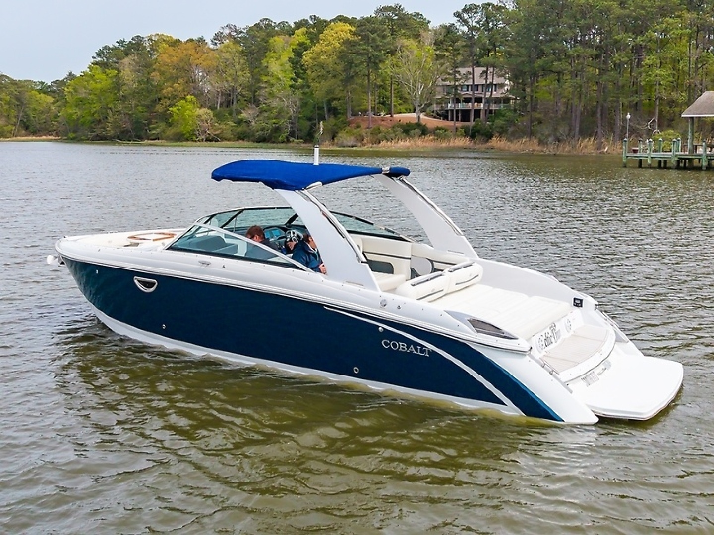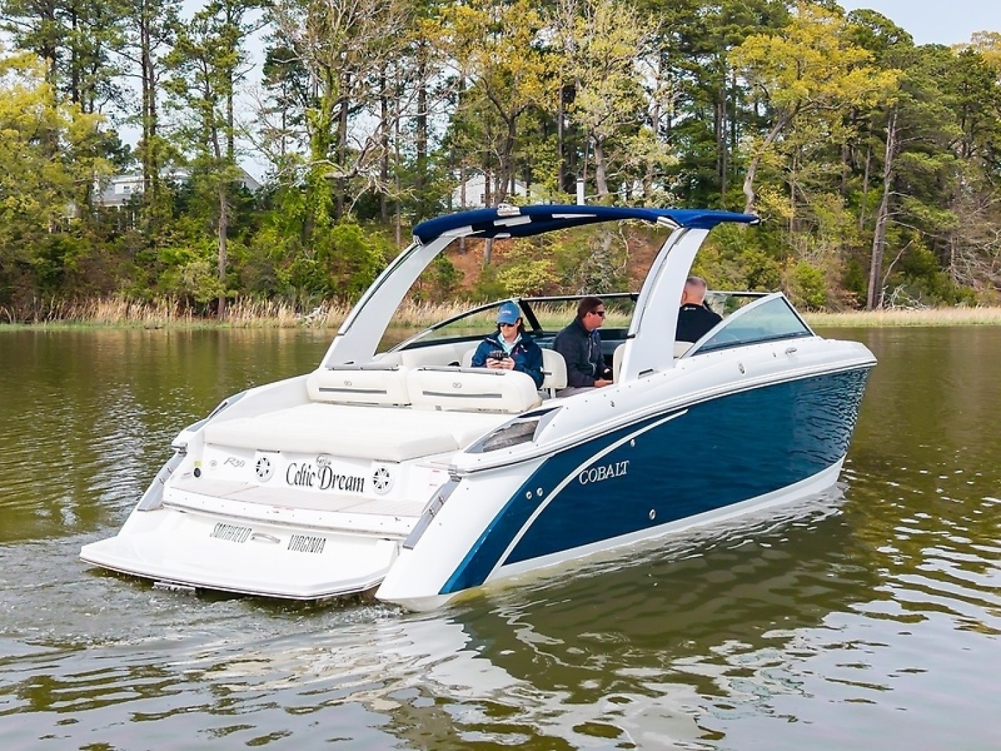 The COBALT R30 – a luxurious open-bow day boat designed with “Free Space Reclamation”, Cobalt’s exclusive technique for cockpit maximization. Elegant and expansive seating options combine with its endless storage spaces to provide the legendary ride that Cobalt is famous for. The largest of the BR Series, the R30 also features an electric actuated swim step that lowers to just below the water’s surface. Also astern, find a beach of a sunpad – large enough for four sun worshipers. And when it comes time to gather around for some good fun and conversation, make useful our convertible layout in the cockpit. Lounge the seats forward or aft, gather around the teak-adorned cockpit table or covert the area into a couch oasis with filler cushions. The port side features a head compartment that doubles as a changing room. At the helm, the captain will find the glass cockpit design provides a birds-eye-view for a safe and enjoyable day on the water – equipped with Garmin screens that keep your systems and route in view at all times. We cannot forget about the joystick control with its easy maneuverability and simple operation.