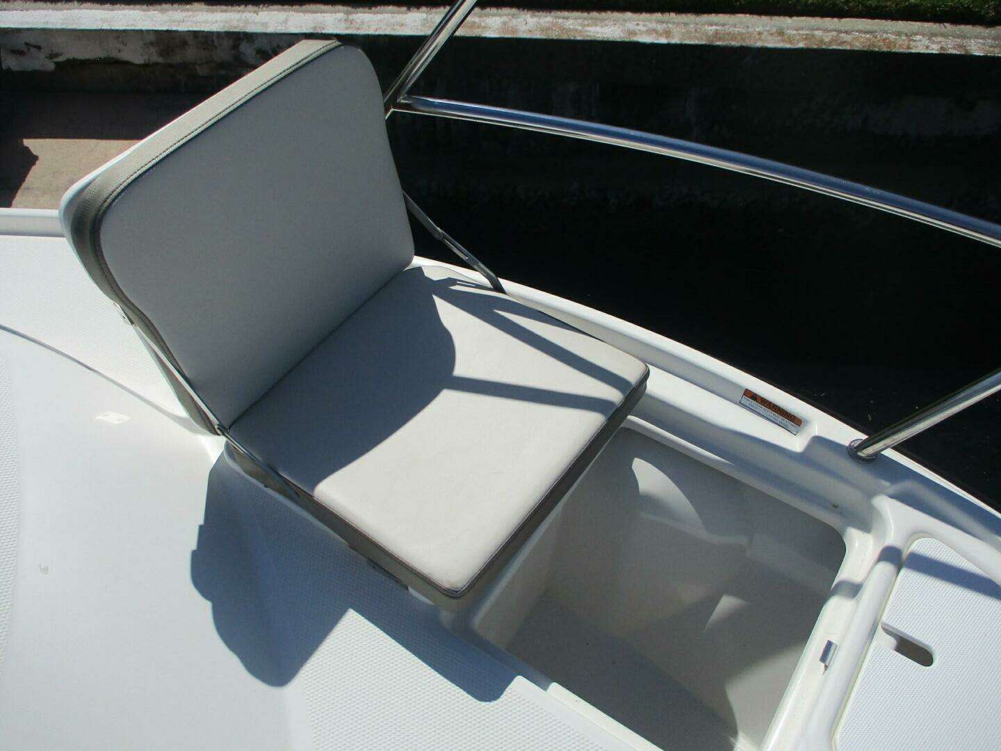 The foredeck features two jump seats that fold down into the deck and a centerline llounge seat.