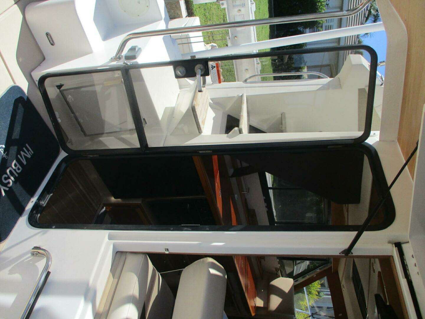 The flybridge has a bimini top, however it is stored away for hurricane season.