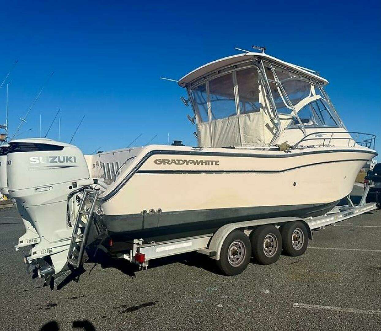 The 2007 Grady White 30 Express is a reliable and versatile center console boat designed for offshore fishing and cruising. It features a spacious cockpit with ample seating and storage, making it ideal for fishing trips or family outings. Powered by twin 2023 Suzuki 300 horsepower engines, this vessel offers impressive performance, speed, and maneuverability, with only 138 hours on the engines, ensuring durability and efficiency. The boat is equipped with a Fisher Panda 4 KW generator, providing reliable power for onboard systems and amenities. Additionally, it includes chiller plates installed in the fish box and drink box which help keep your catch fresh during extended trips. Overall, this well-maintained Grady White combines quality construction, modern power, and practical features for serious anglers and boat enthusiasts alike.