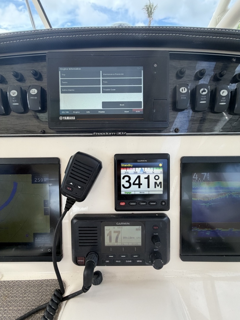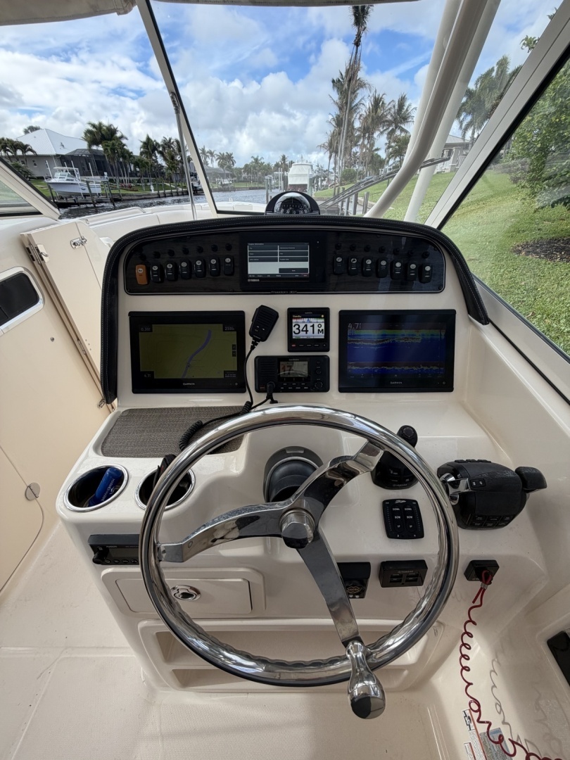 This vessel offers the comfortability of a dual console and the fishability of a center console. She is propelled by twin Yamaha 300s with 460 hours on them. Being a lift kept boat she is in great condition and is ready for her new owner.