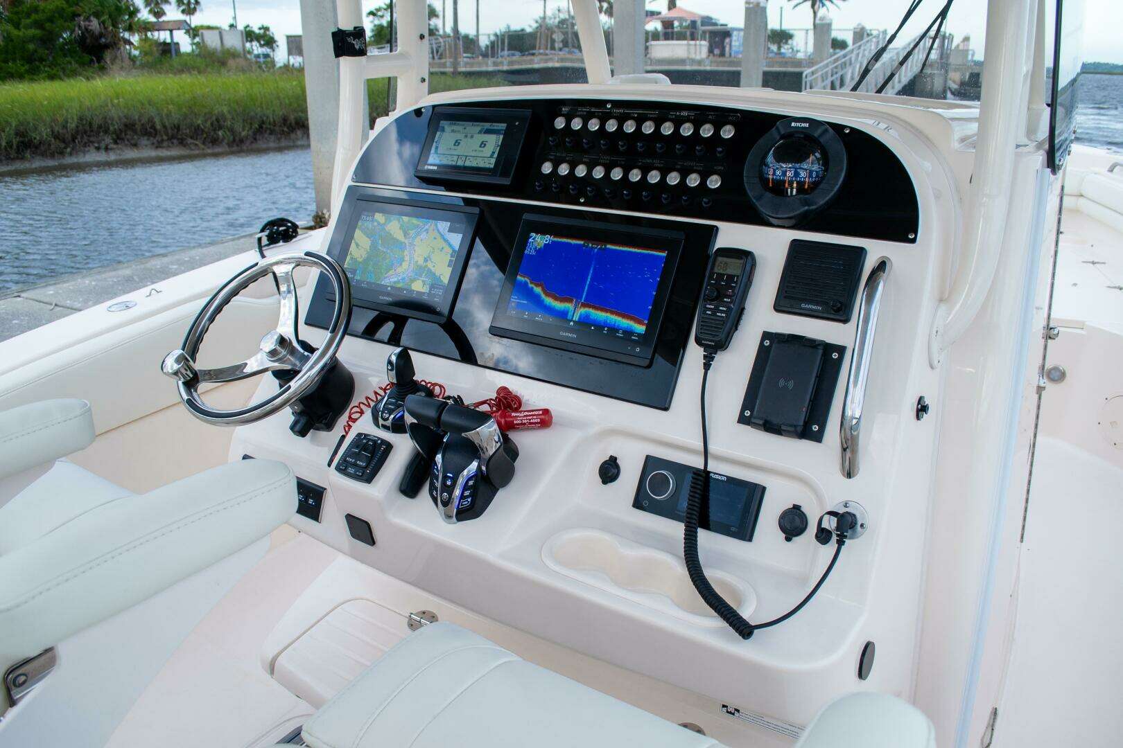 2020 Grady-White Canyon 306 powered by twin Yamaha 300s (1,150 hrs) with joystick, autopilot, and full Garmin electronics. Loaded with radar, outriggers, underwater lights, live well, fish boxes, and more. Includes Magic Tilt triple axle trailer. Turnkey and ready to fish or cruise.