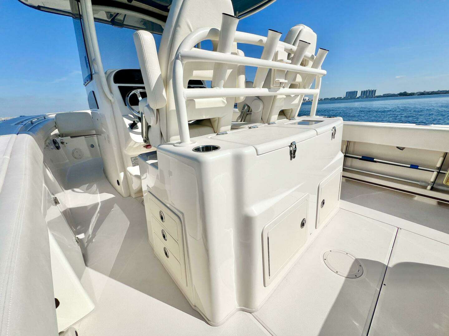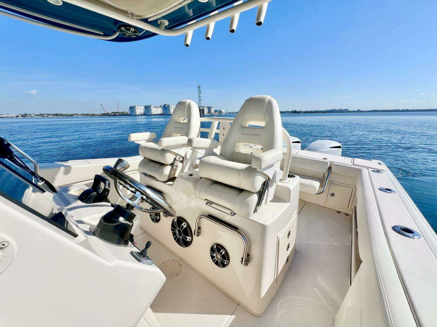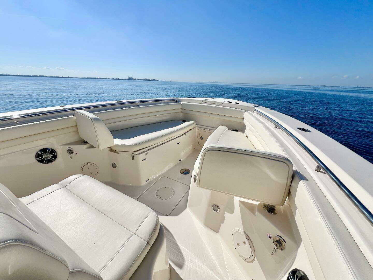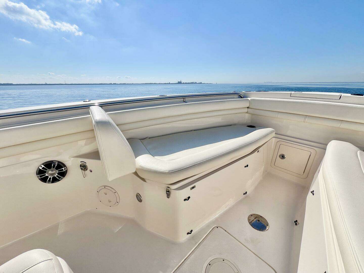 Low hours, indoor stored, exceptional condition. Powered by Yamaha F300s, Raymarine Electronics, Bow Thruster!