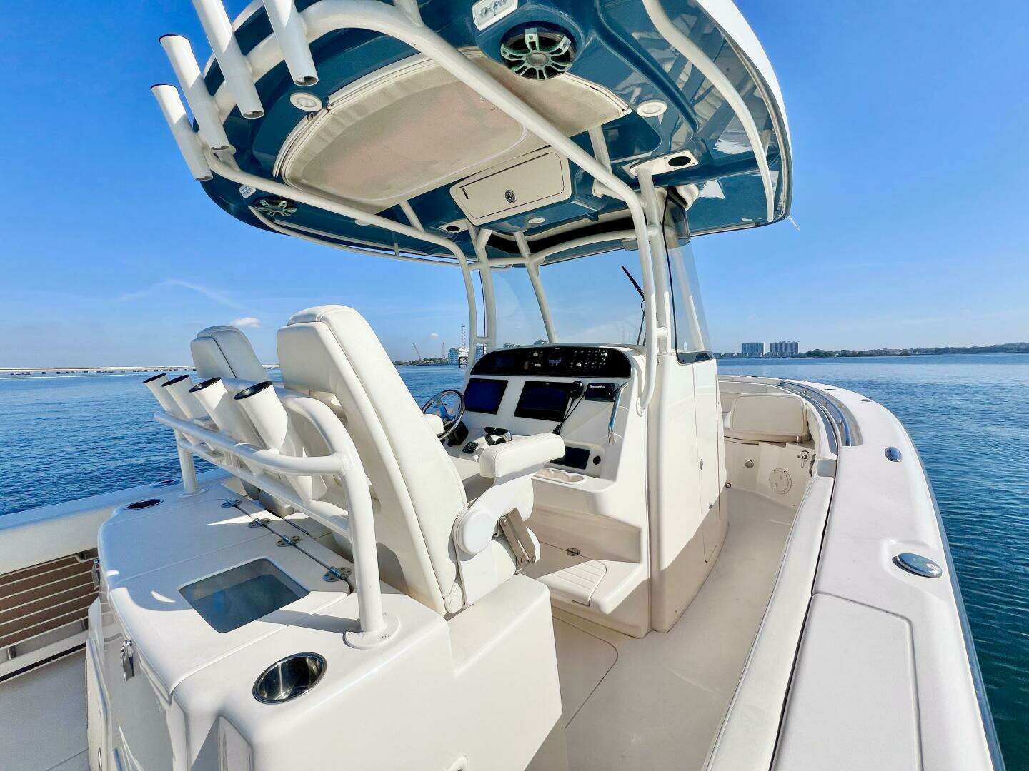 - SeaPort Blue hull color and T-top color matched gelcoat