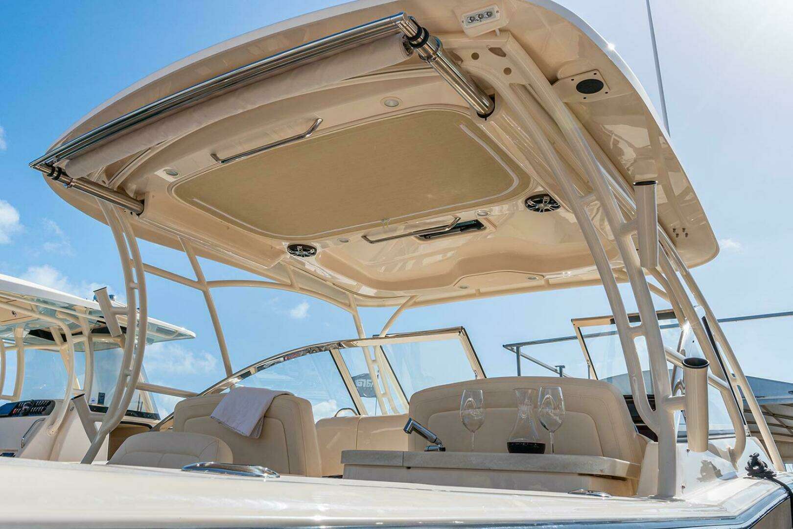 - SureShade® electrically retractable cockpit shade w/Sunbrella® canvas (oyster) (not available w/top mounted rod holders option)