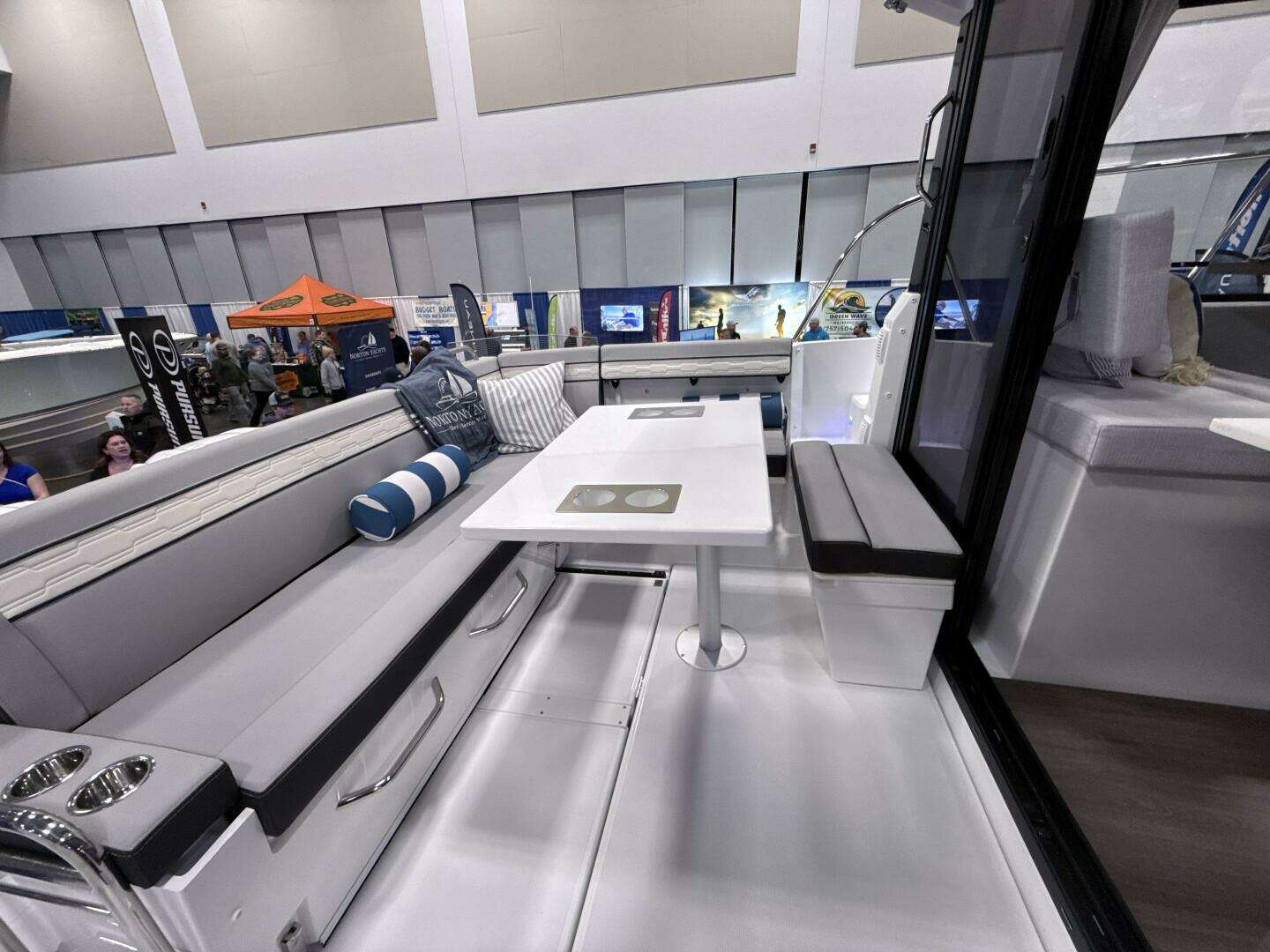 - Improved Helm Station with side door for single-handed docking—ideal for marina maneuvering