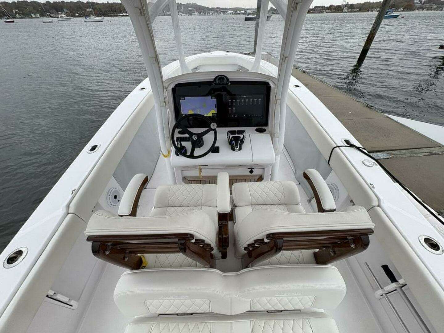 Just in is this like new 2023 low hour 30 Jupiter. She comes powered by a pair of Yamaha F300XA's (100hours) with Helmaster EX joystick for seamless maneuvering at dock or on the fishing grounds.
