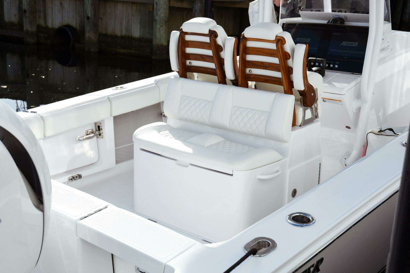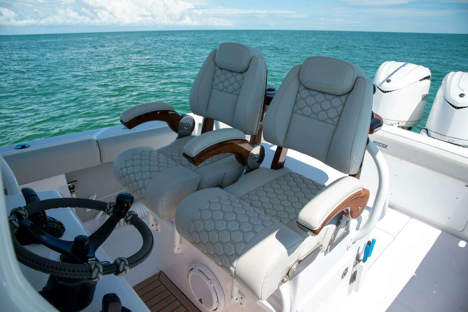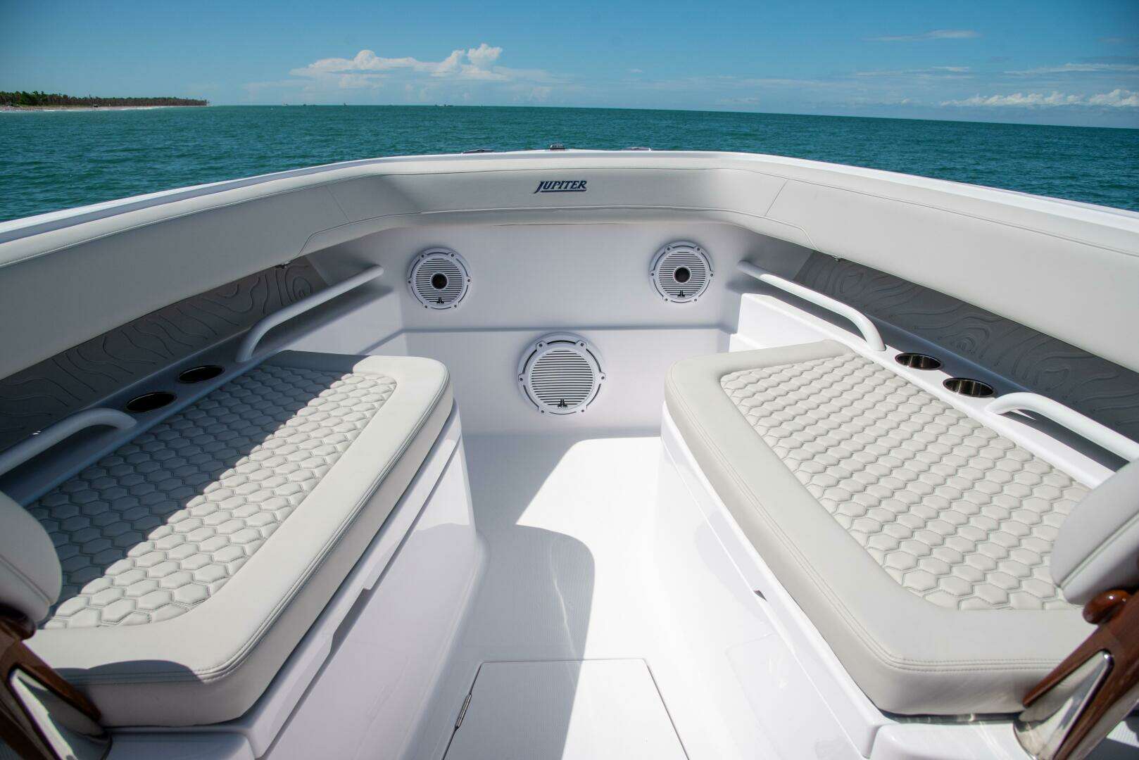 If you’re in the market for a do-everything boat, welcome aboard. From offshore fishing to waterfront dining, and secluded beaches to parties at the yacht club, the sleek and powerful Jupiter 30 – outfitted with a boatload of features and seating options – masters it all with unmistakable style. Features and options on this boat include: