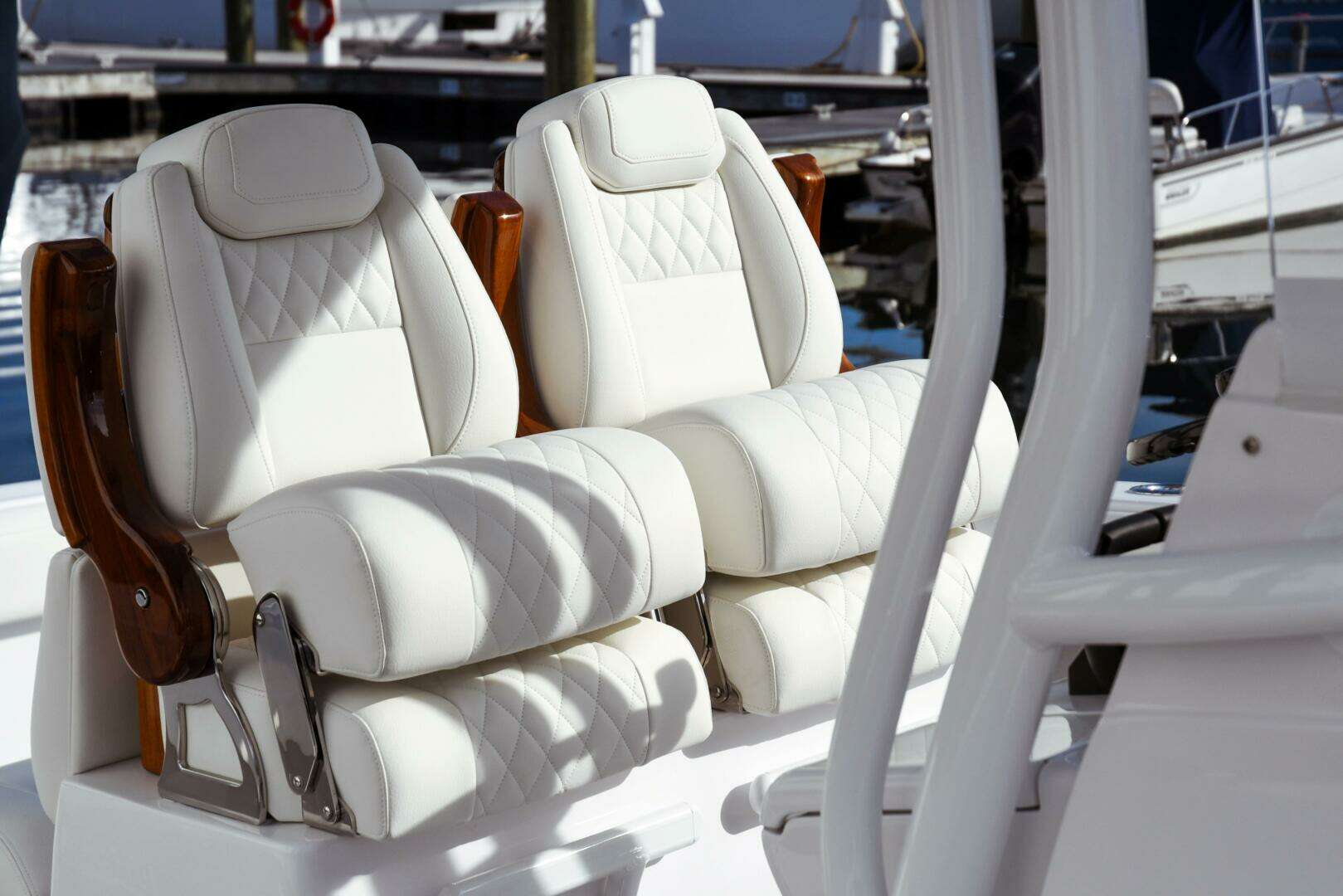 Release Marine Teak Forward Seating Backrests, Removable, with Covers