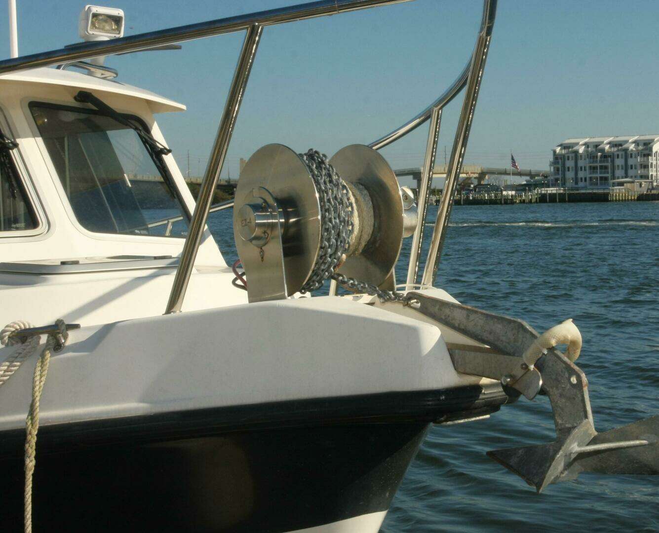 Large extended Cabin with 6'4" Headroom. Lockable rod storage in cabin. 7'8" V Berth can sleep 2. Dinette converts to double sleeper. Second smaller cabin can sleep one. Abundant storage throughout. Galley includes Refrigerator, Microwave, Sink and countertop. Webasto Diesel Powered Cabin Heater. Large cockpit with second helm station, fish boxes, live wells, transom door.