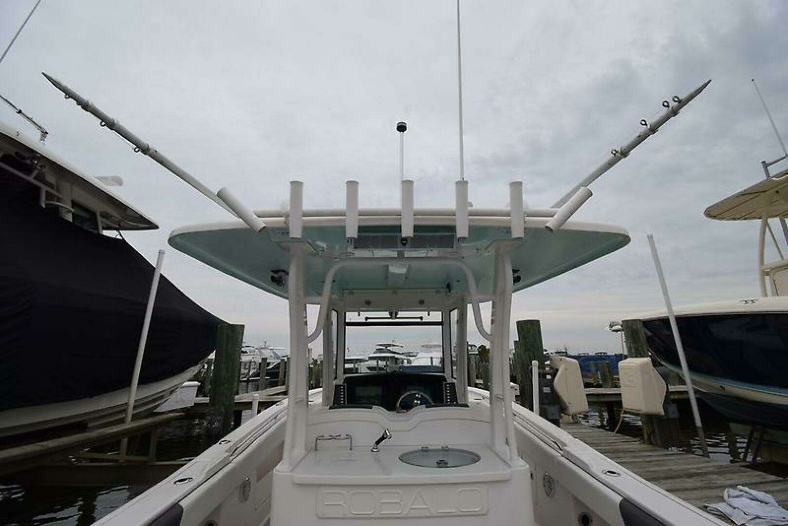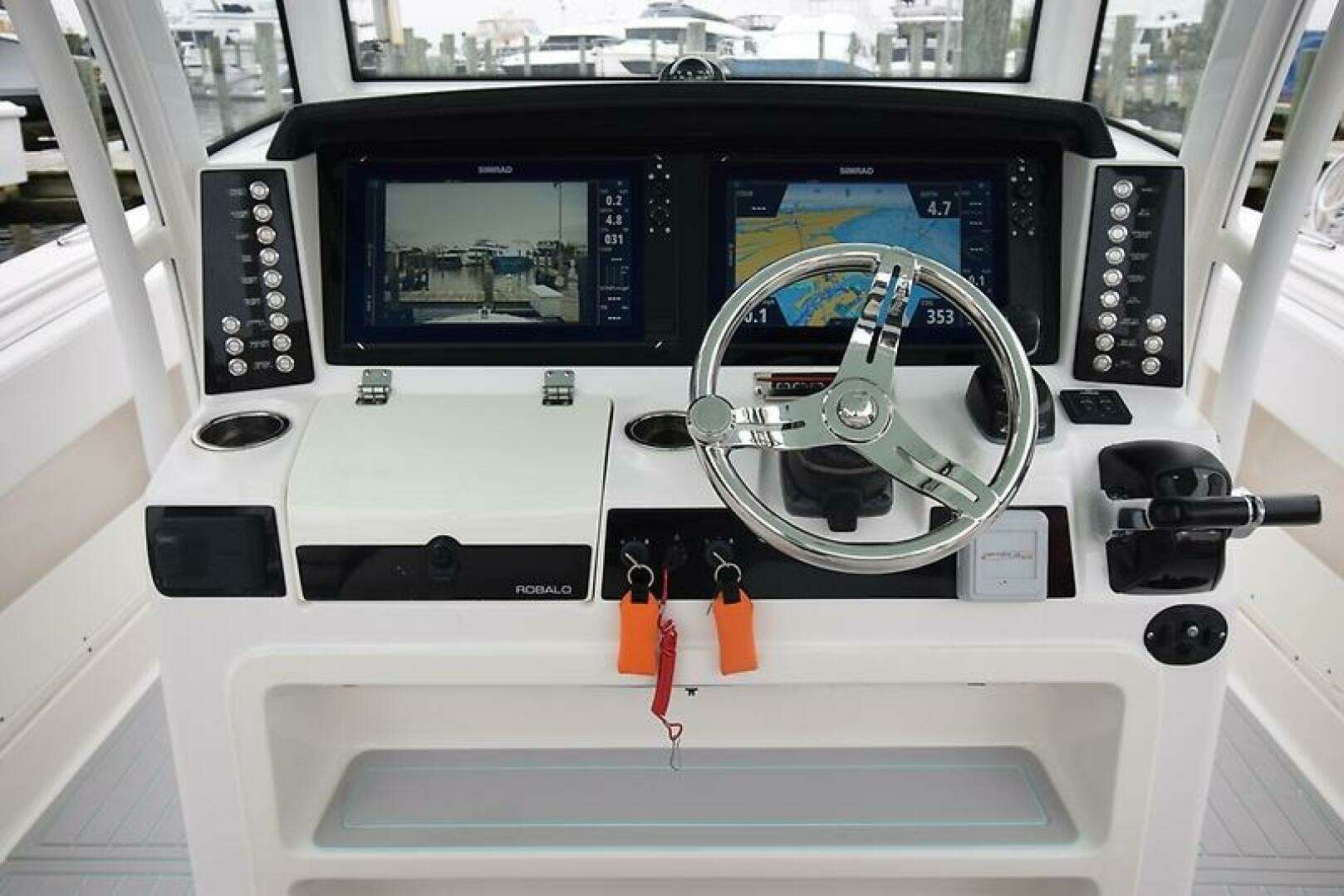 Highly optioned and impeccably clean Robalo R302 with joystick control and a new 2025 tandem axle aluminum trailer. From her brightly polished hull, full canvas cover, custom individual canvas covers, incredible wetsounds amps, speakers and speaker bar, Simrad displays, HALO 72 mile open array radar, autopilot, Sionyx night vision camera, new VHF e-rigger electric antenna, custom helm charging ports, and new Seadeck custom flooring throughout, this R302 has it all. Over $19k in owner upgrades this summer! She even has fresh 2025 batteries! Call, text or email with any questions or to set up an appointment to get aboard.