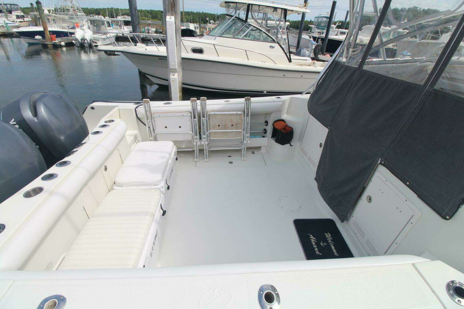 The custom designed hard top holds a remote spot light, and even provides storage for safety equipment and gear, in its built in locking storage compartments. Powered by reliable Yamaha 250's, and riding on the best performing hull design in the industry.