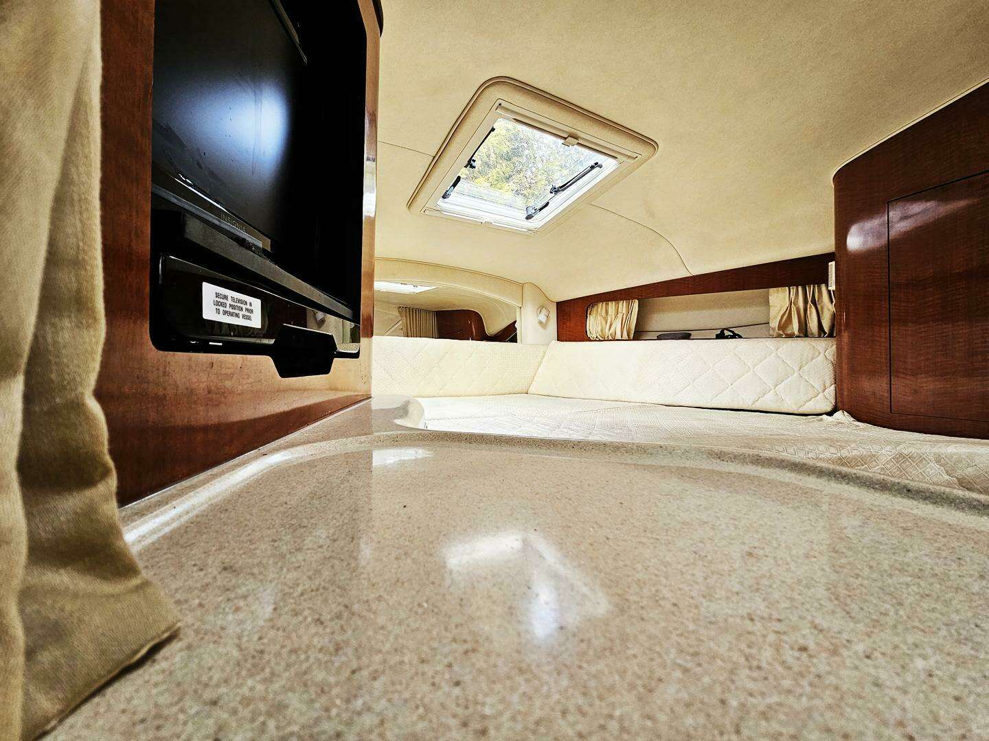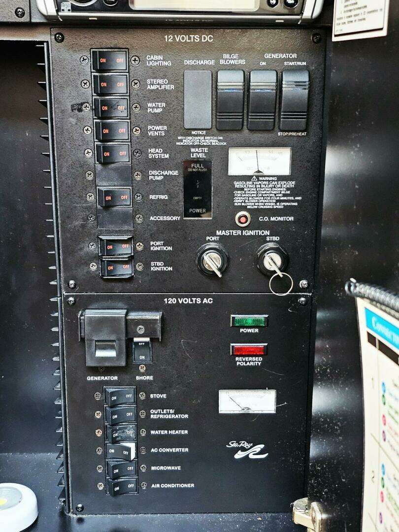 - Amenities: Features an enclosed head with a VacuFlush system and shower, air conditioning with reverse cycle heat, and high-gloss burlwood cabinetry.