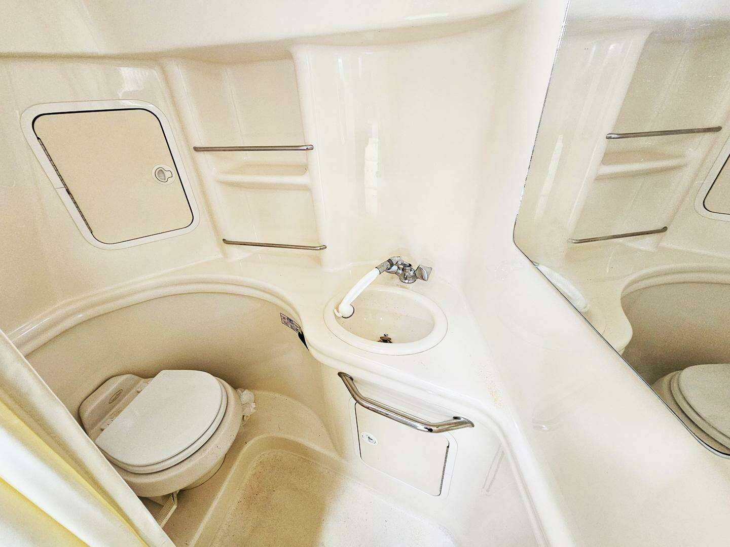 - Sole Fiberglass with Molded Nonskid & (Snap in Carpet)